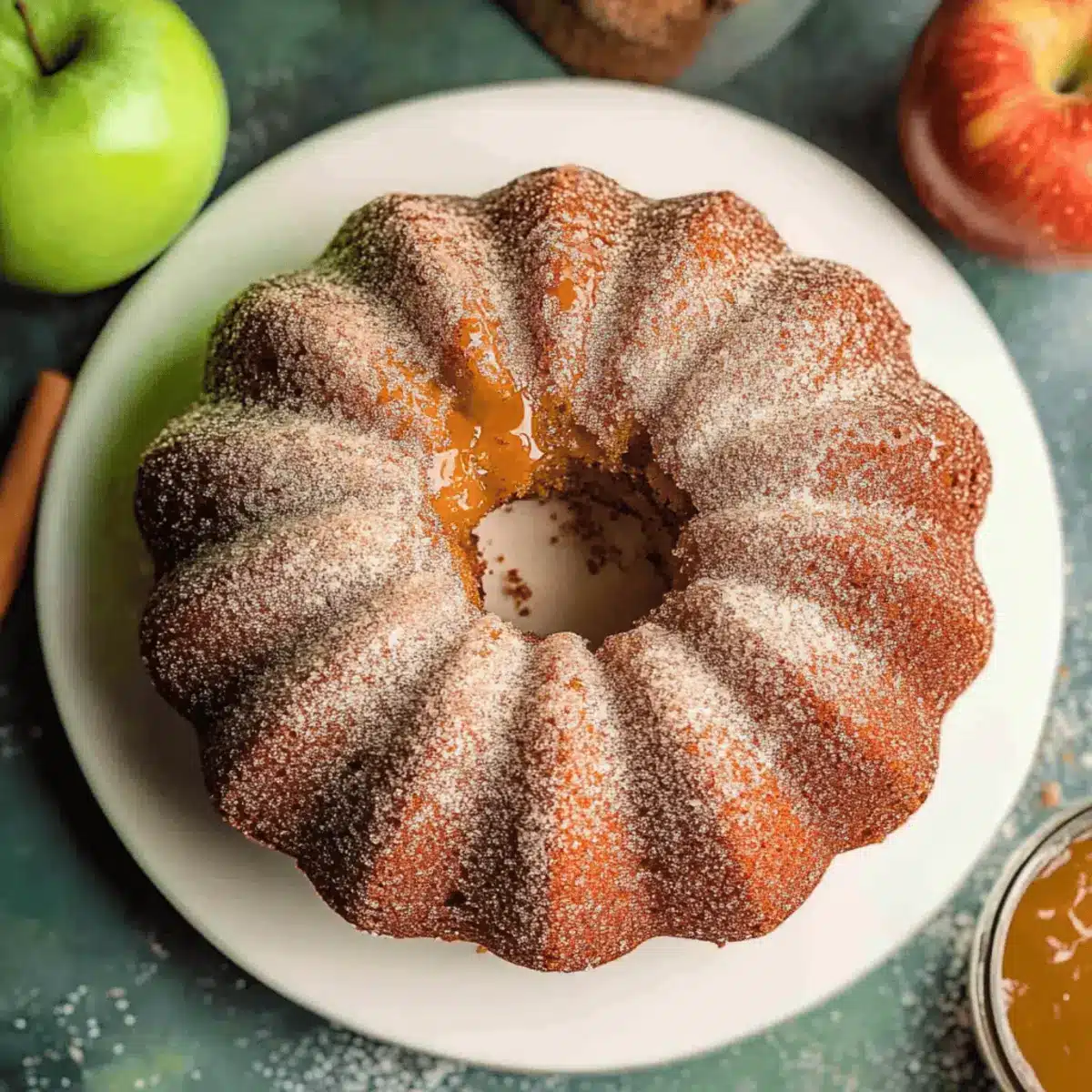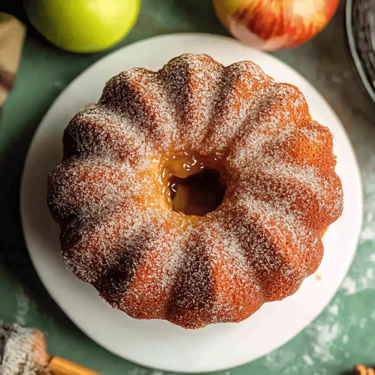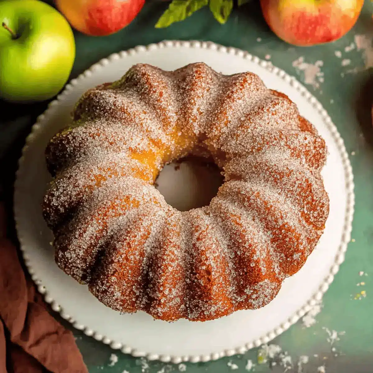 Once the cake has finished baking, let it cool in the pan for about 10 minutes before inverting it onto a wire rack. While the cake is still warm, brush the warm cider glaze generously over the top. Finally, sprinkle the top with a mixture of cinnamon and sugar for a delightful crunch that complements the soft cake.