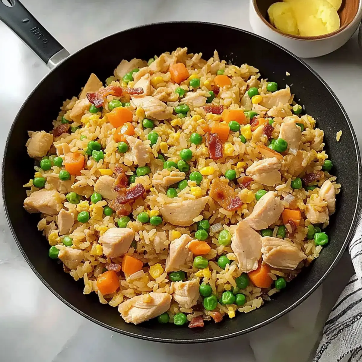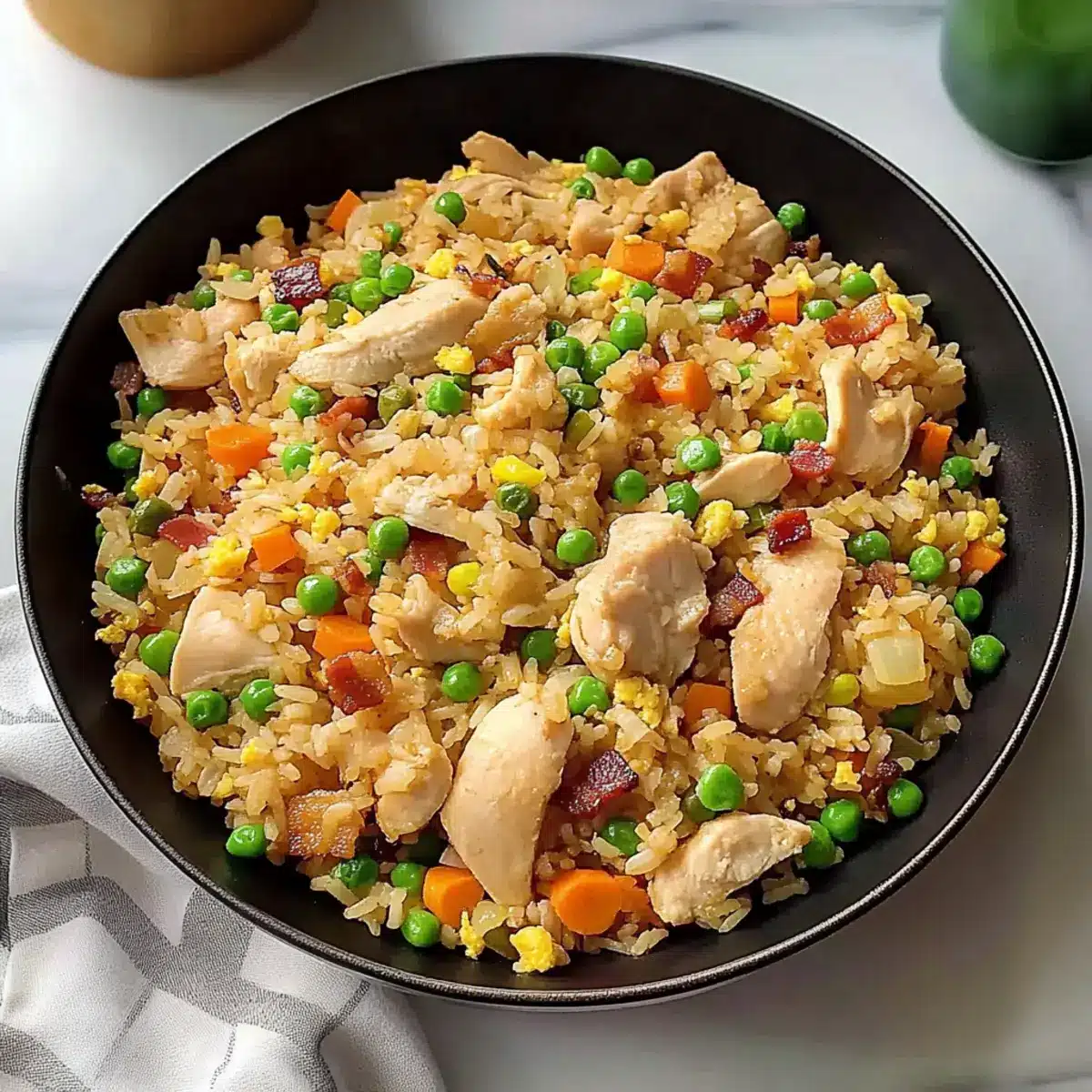 The tantalizing aroma of sizzling chicken, fresh veggies, and smoky bacon wafting from the kitchen is enough to make anyone’s mouth water. For those busy weeknights when you crave a hearty meal but don’t want to spend hours cooking, this Asian Chicken Fried Rice is a true lifesaver. Coming together in just 20 minutes, this one-pan wonder not only offers a quick and satisfying dinner but also turns leftover rice into something extraordinary. With its delicious blend of flavors and a pop of color, it’s sure to entice even the pickiest eaters at your table. So, are you ready to transform your leftovers into a sumptuous dish the whole family will love? Let’s dive in!