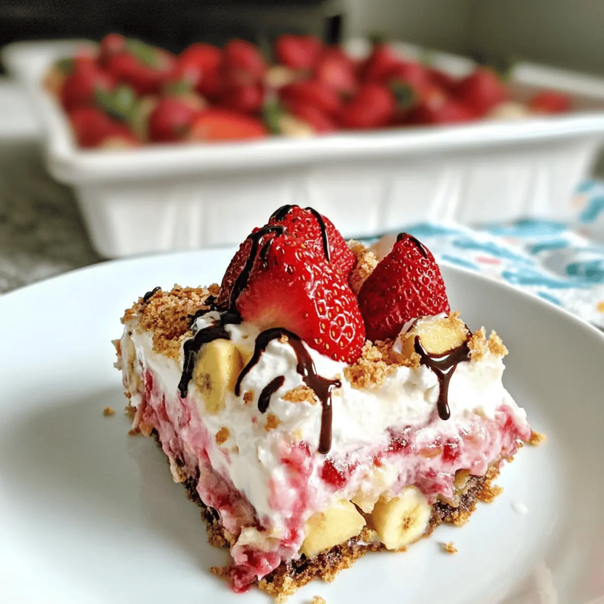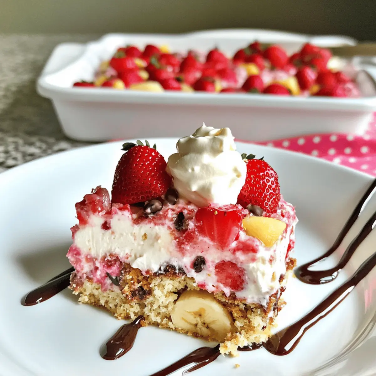 Whipped Cream: A dollop of lightly sweetened whipped cream adds a fluffy texture that enhances each bite of your Banana Split Dump Cake.