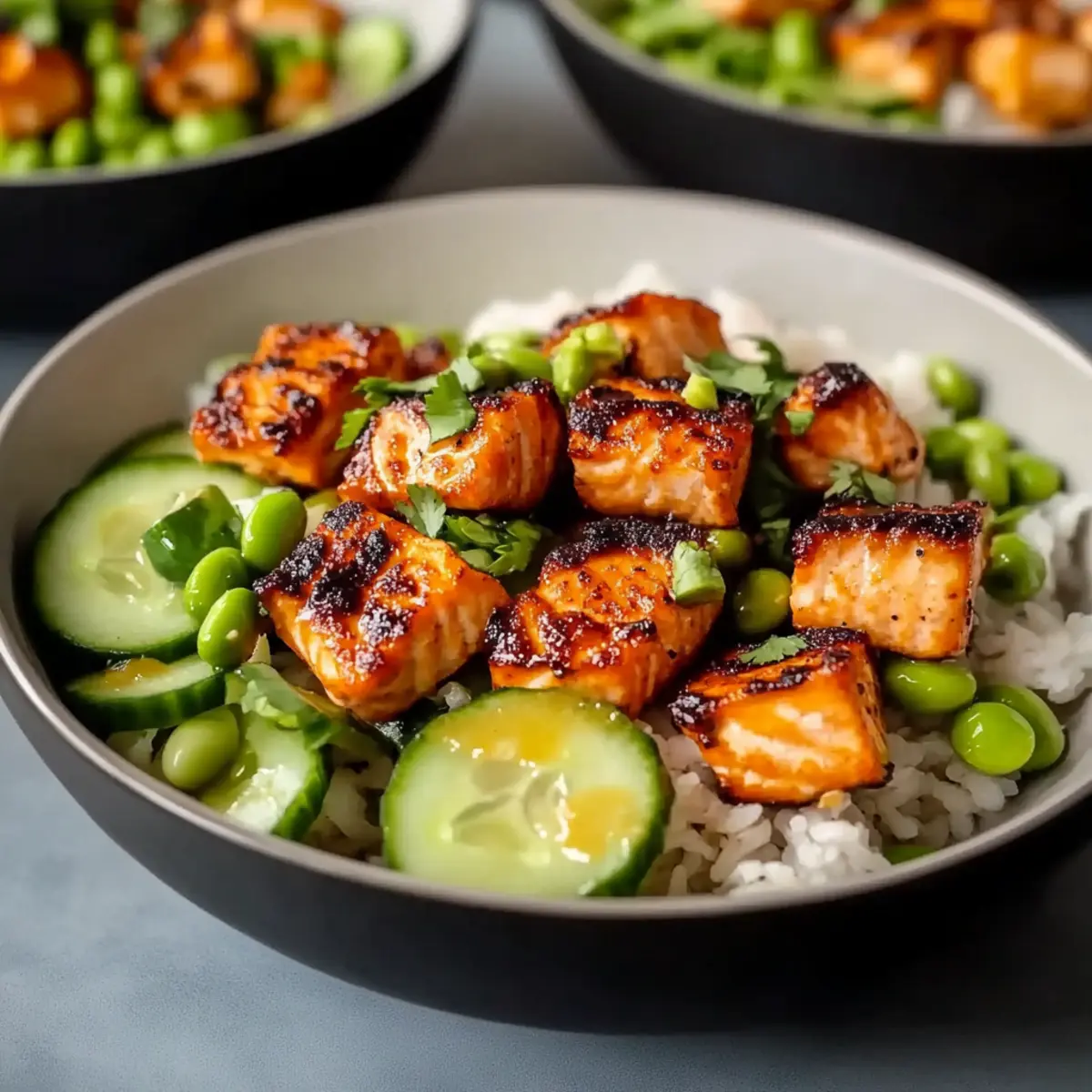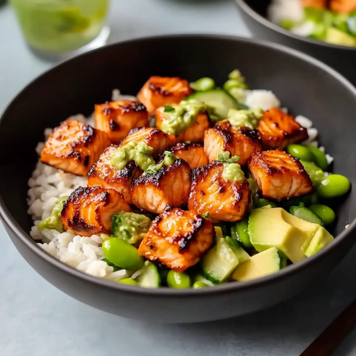 These Bang Bang Salmon bites are a lifesaver for busy cooks looking to save time during meal prep! You can prepare the Bang Bang sauce (mayo, sweet chili sauce, and spices) up to 1 week in advance and refrigerate it in an airtight container to maintain its delicious flavor. Additionally, you can cut the salmon into cubes and marinate them in your favorite seasonings up to 24 hours ahead—just be sure to keep them covered in the fridge. When you’re ready to serve, simply cook the salmon as desired (air-fry, pan-fry, or bake) and toss together your fresh salad with cucumber and edamame, adding the avocado just before serving to prevent browning. This way, you’ll enjoy the same irresistible taste while gaining precious time on a busy weeknight!
