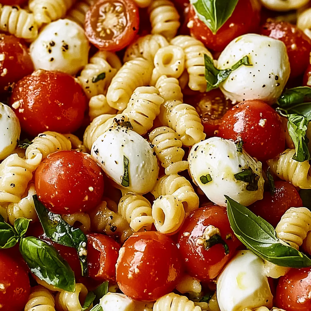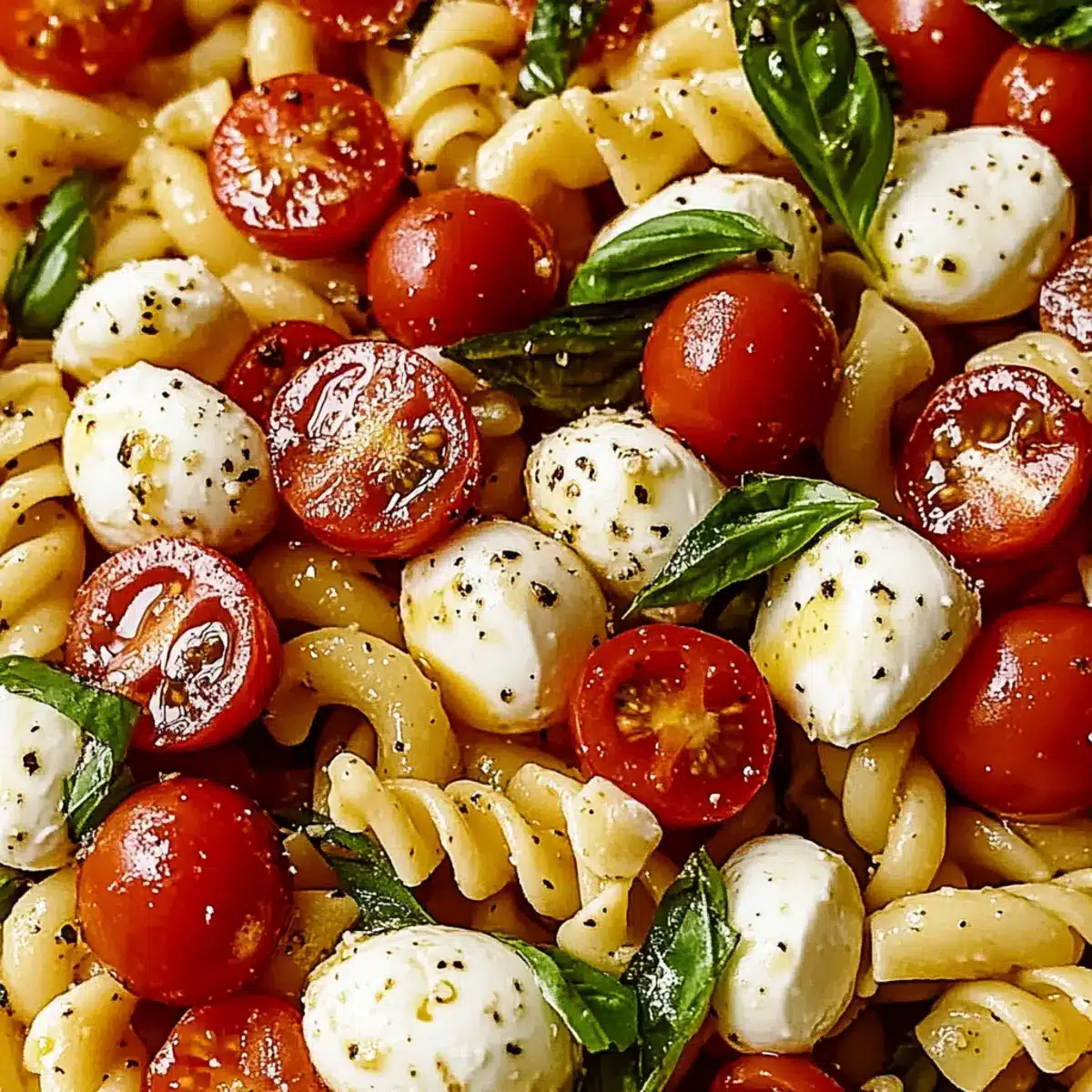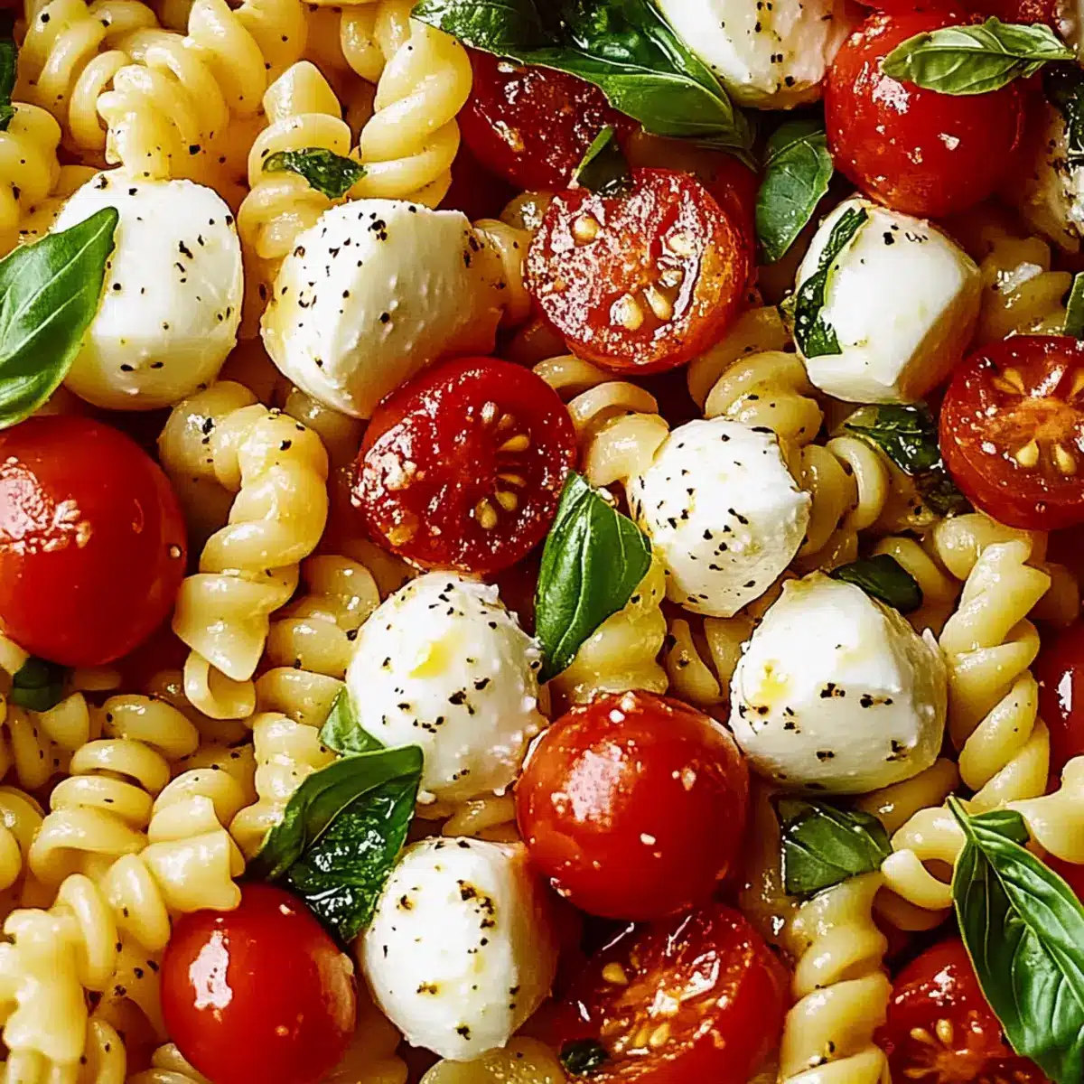 Freshness, this dish is a vibrant celebration of summer flavors, combining juicy tomatoes and aromatic basil with creamy mozzarella. Simplicity, you can whip it up in just 30 minutes, making it a perfect choice for busy weeknights or last-minute gatherings. Versatile, serve it as a side or toss in grilled shrimp for a complete meal! Think of pairing it with Beef Pasta Comforting for an unforgettable dinner. Make-Ahead Friendly, it stores well, with flavors getting even better after a day in the fridge. Experience the delight of each juicy bite—you’re sure to fall in love with this refreshing Caprese Pasta Salad!