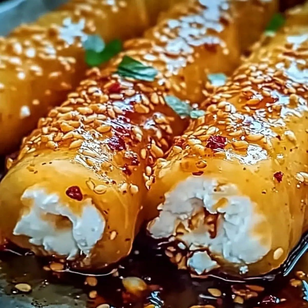 Oven Fried Feta Rolls with Chili Honey for Irresistible Snacking
