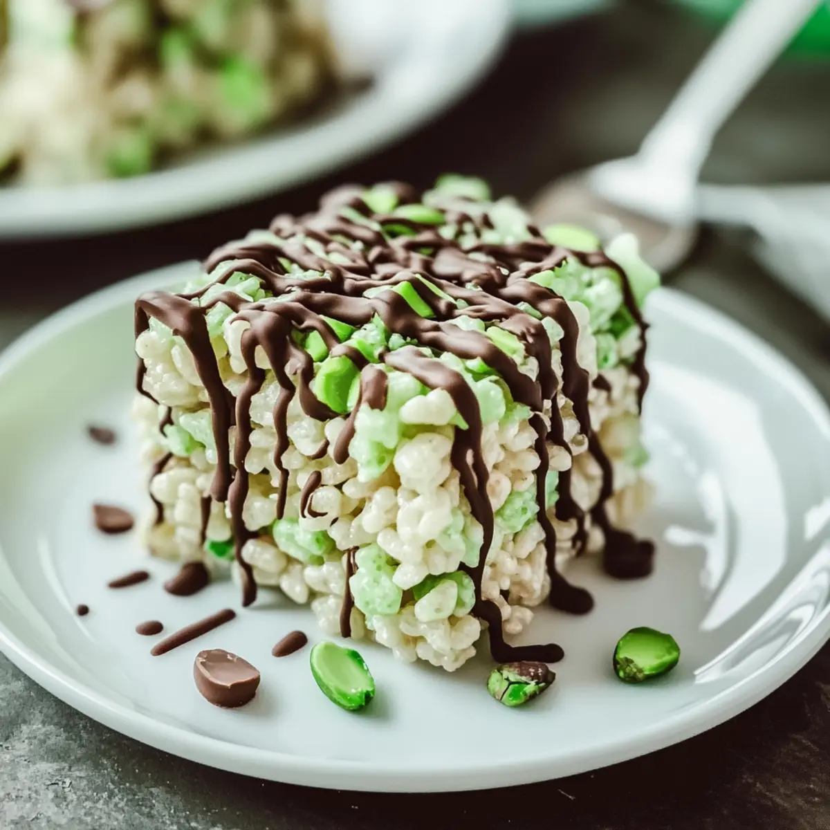 Irresistible Pistachio Rice Krispies with Chocolate Drizzle