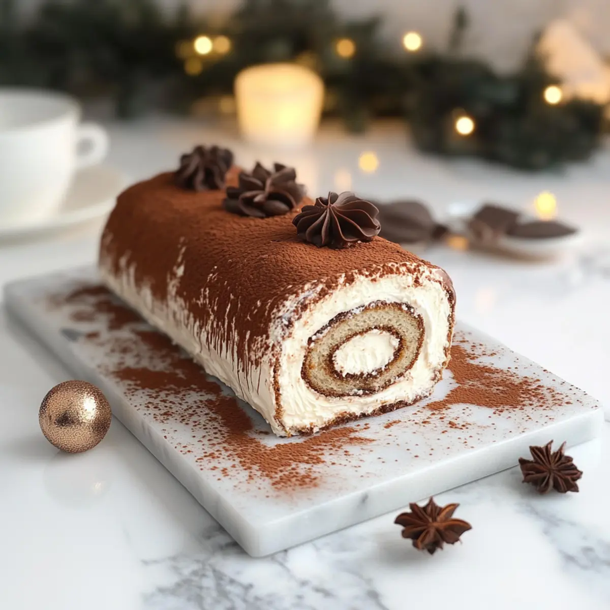 Gourmet Tiramisu Yule Log Cake: Festive Coffee Bliss Awaits