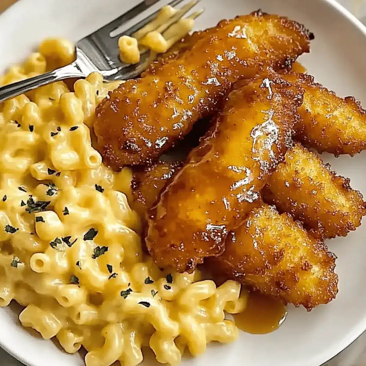 Hot Honey Chicken Tenders with Baked Mac and Cheese Bliss