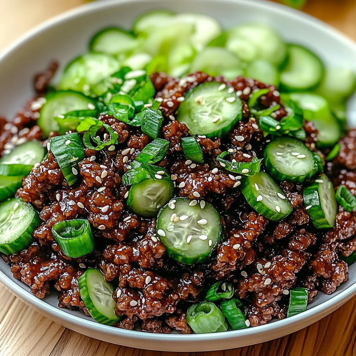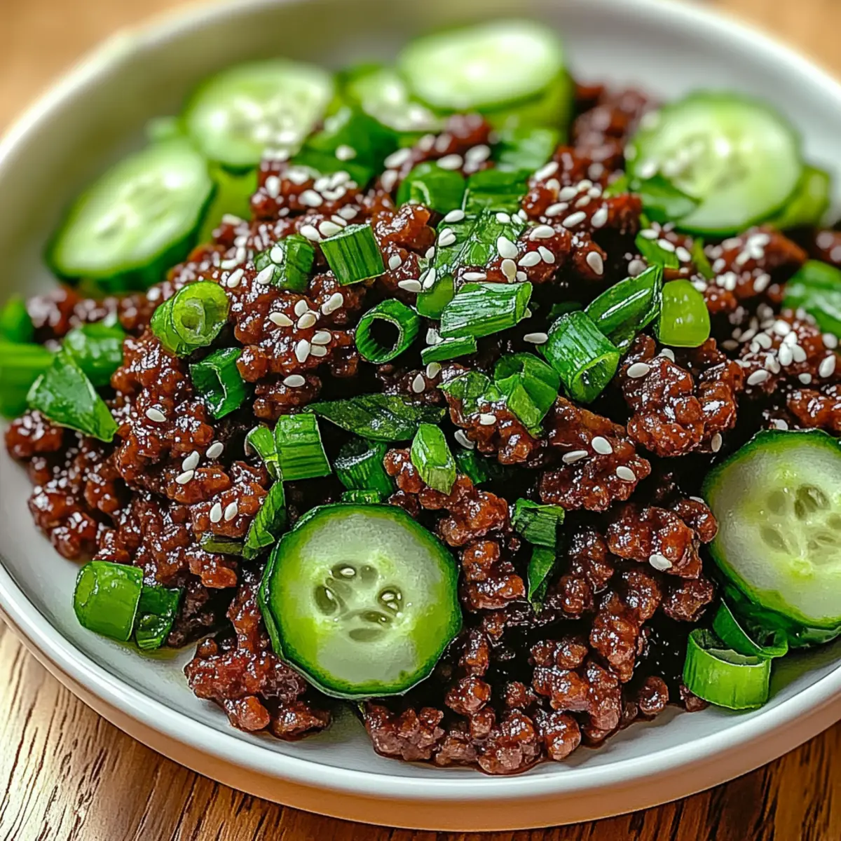 Spicy Keto Korean Ground Beef with Crunchy Cucumber Salad