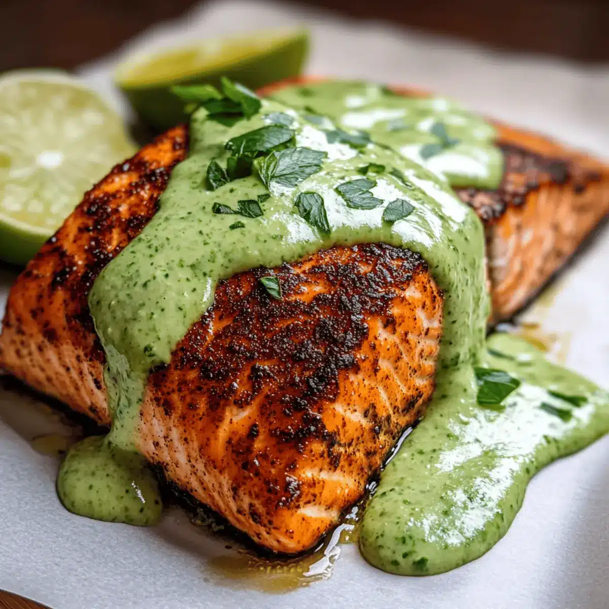 Baked Cajun Salmon and Avocado Lime Sauce for a Flavorful Feast