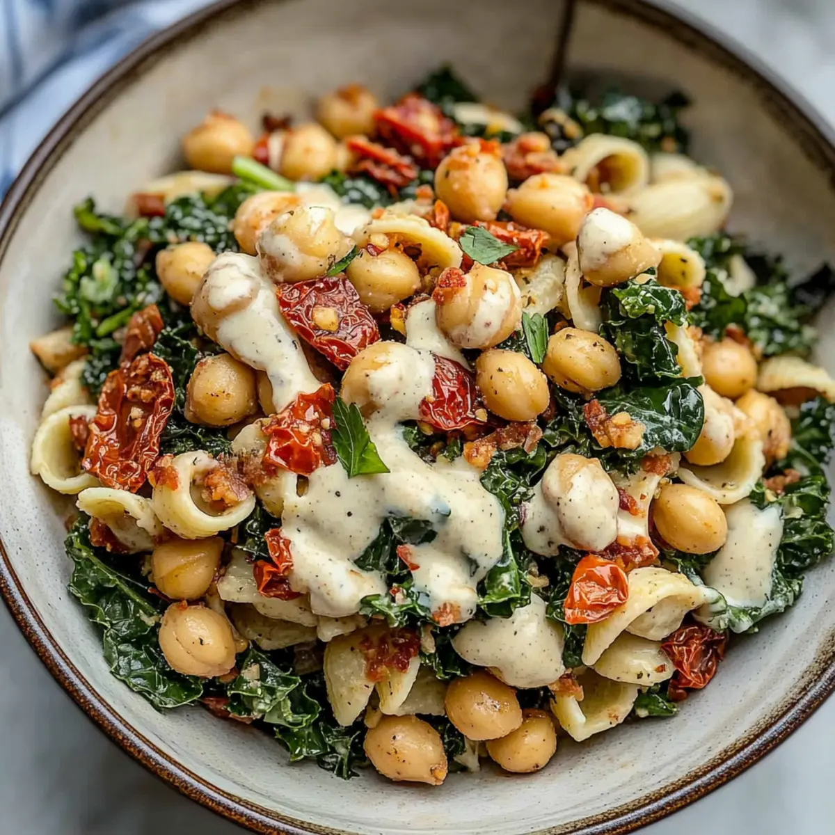Marinated Kale Pasta Salad with Maple Mustard Dressing Bliss
