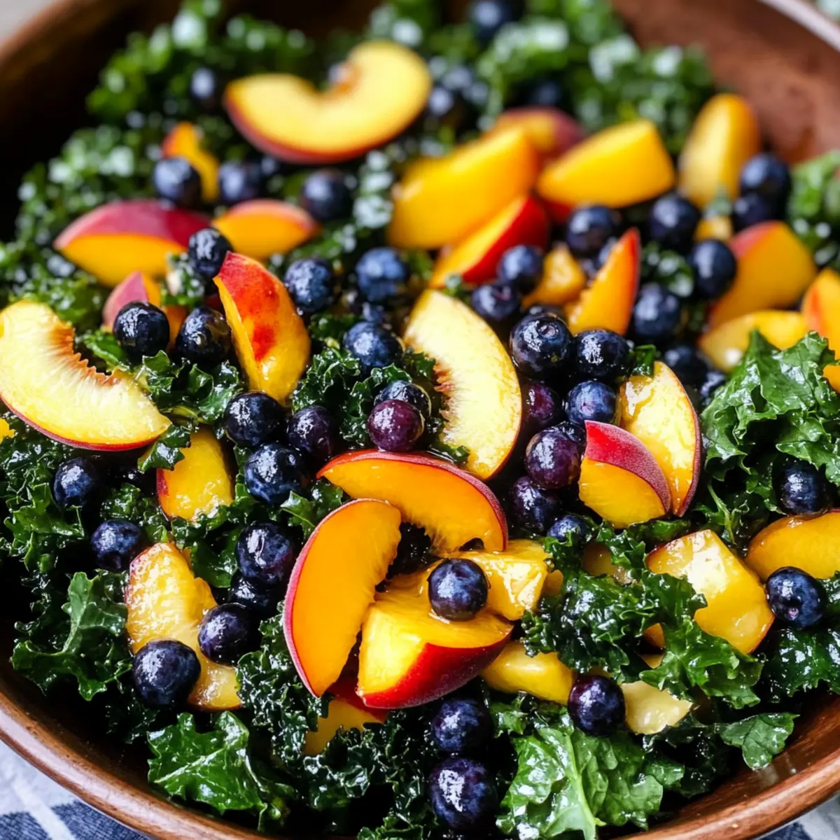Delicious Summer Peach Blueberry Kale Salad You’ll Love