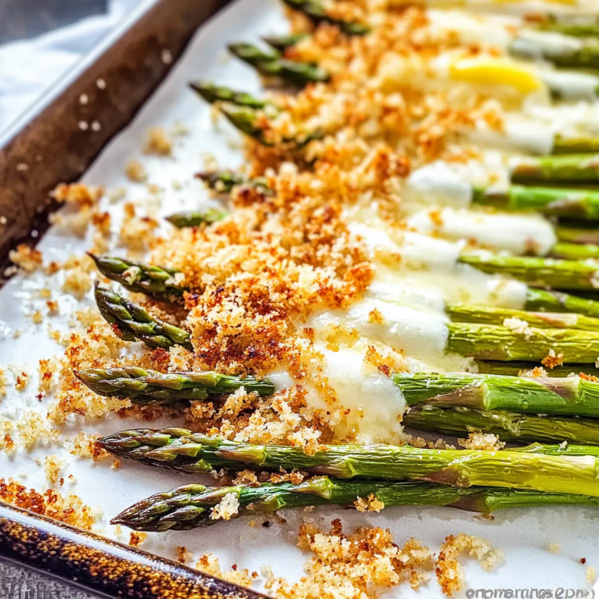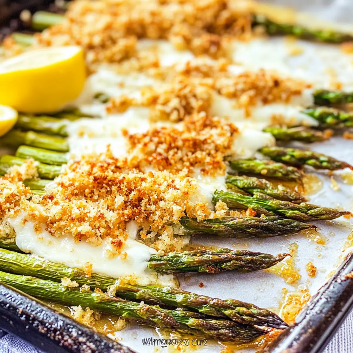 Irresistibly Cheesy Baked Asparagus with Lemon Crunch