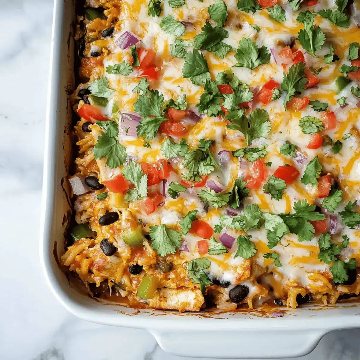 Once out of the oven, let your Chicken Burrito Casserole cool slightly before serving. This brief cooling period allows the flavors to settle and makes it easier to scoop out portions. Serve warm, and feel free to top with avocado slices, fresh cilantro, or a dollop of sour cream for an extra burst of flavor!