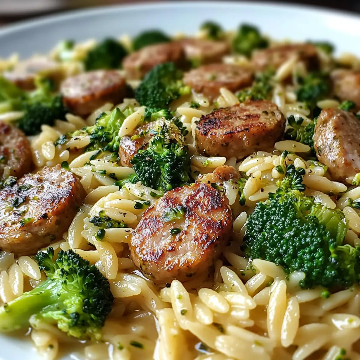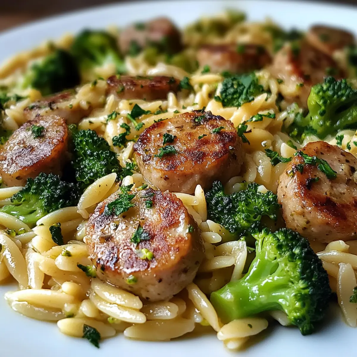 Savory Chicken Sausage Broccoli Orzo Meal in One Pan