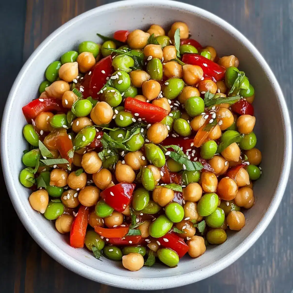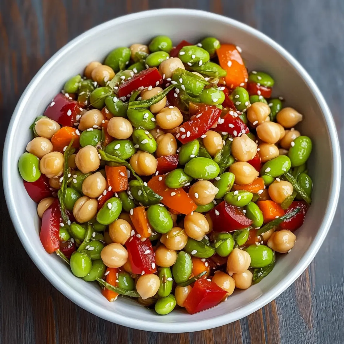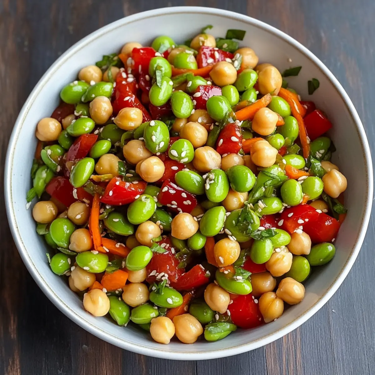 Chickpea Edamame Salad with Ginger Sesame Vinaigrette Delight
