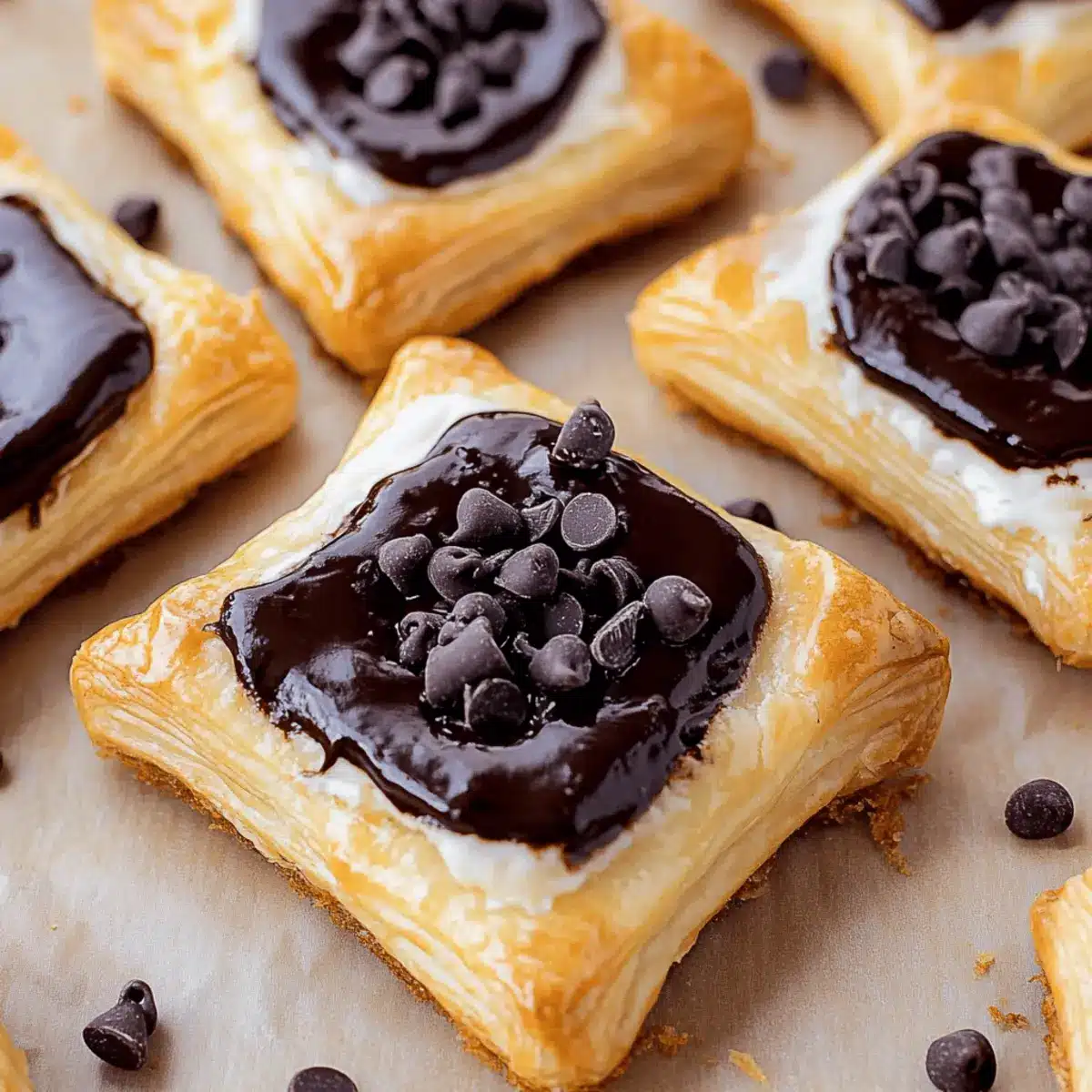 Mini Danishes: Cut the puff pastry into smaller squares and fill with cream cheese and chocolate for bite-sized treats. Just adjust the baking time for these petite pastries!