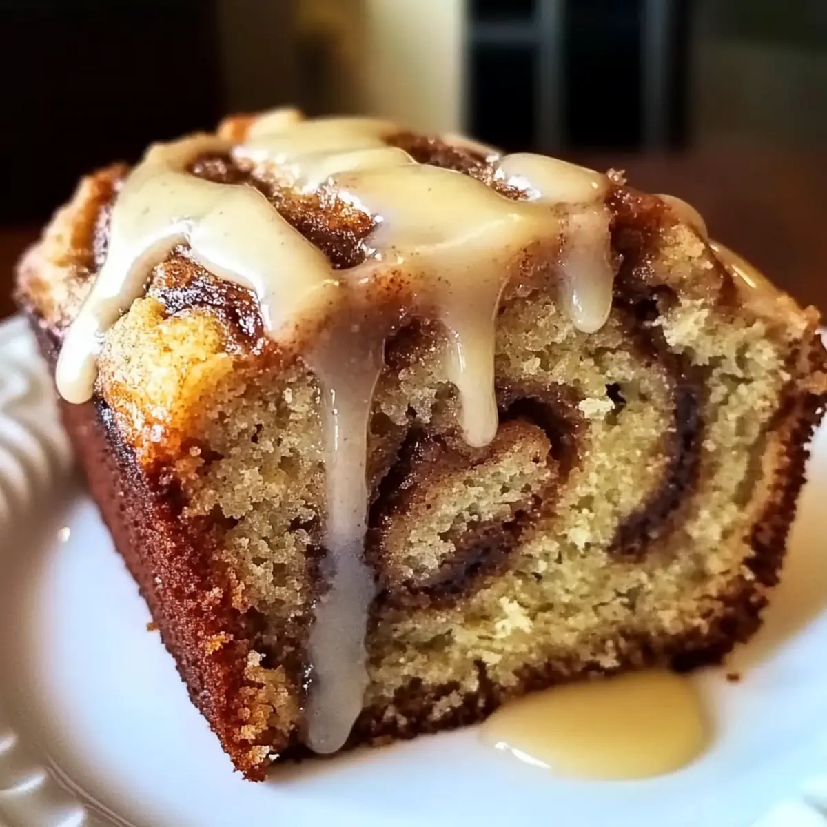 Once your Cinnamon Roll Banana Bread is completely cool, drizzle the prepared glaze over the top. Let the glaze set for a moment, creating a beautiful sheen that makes your delicious creation even more appetizing—perfect for sharing or savoring on your own!