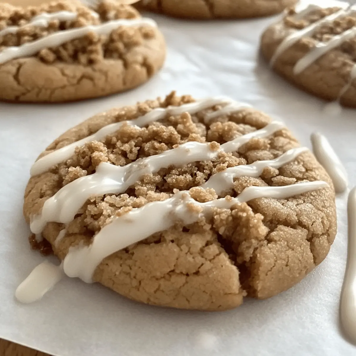 Once baked, remove the cookies from the oven and let them cool on the baking sheet for about 5 minutes. Then, transfer them to a wire rack to cool completely. After cooled, drizzle the icing over each cookie for that beautiful finish—all while keeping the delightful Coffee Cake Cookies warm and inviting!