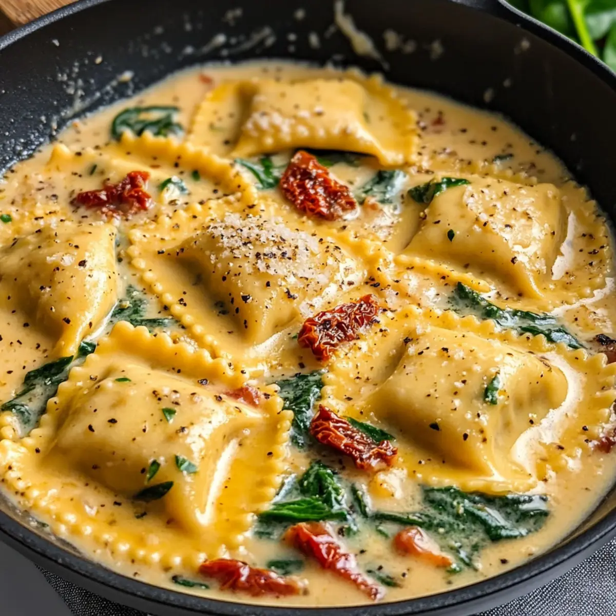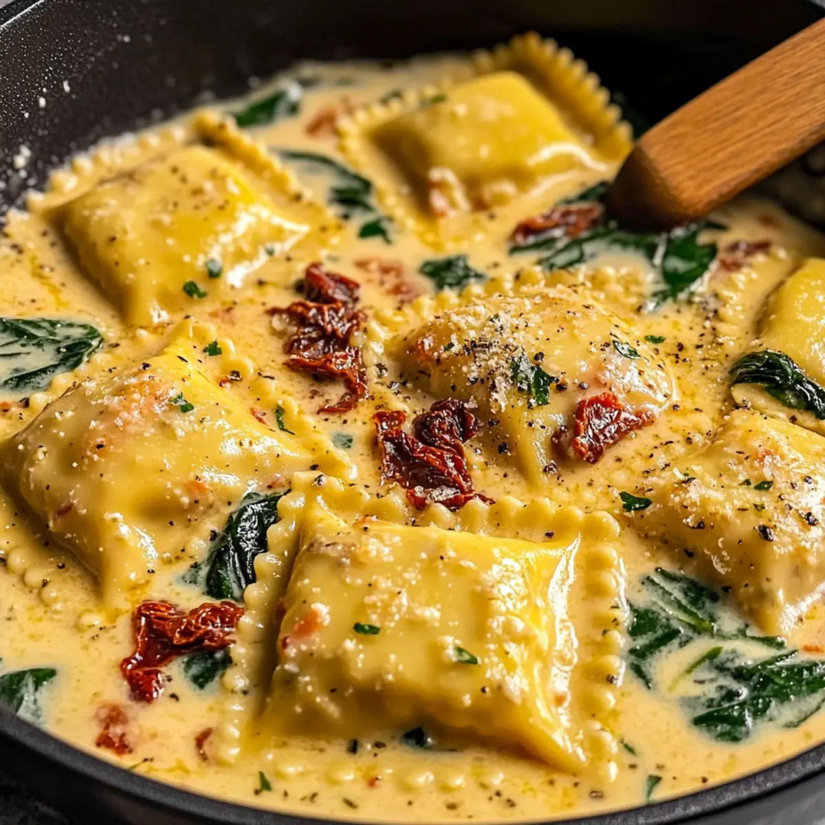 Embark on a culinary journey with this Creamy Tuscan Ravioli as your guide!