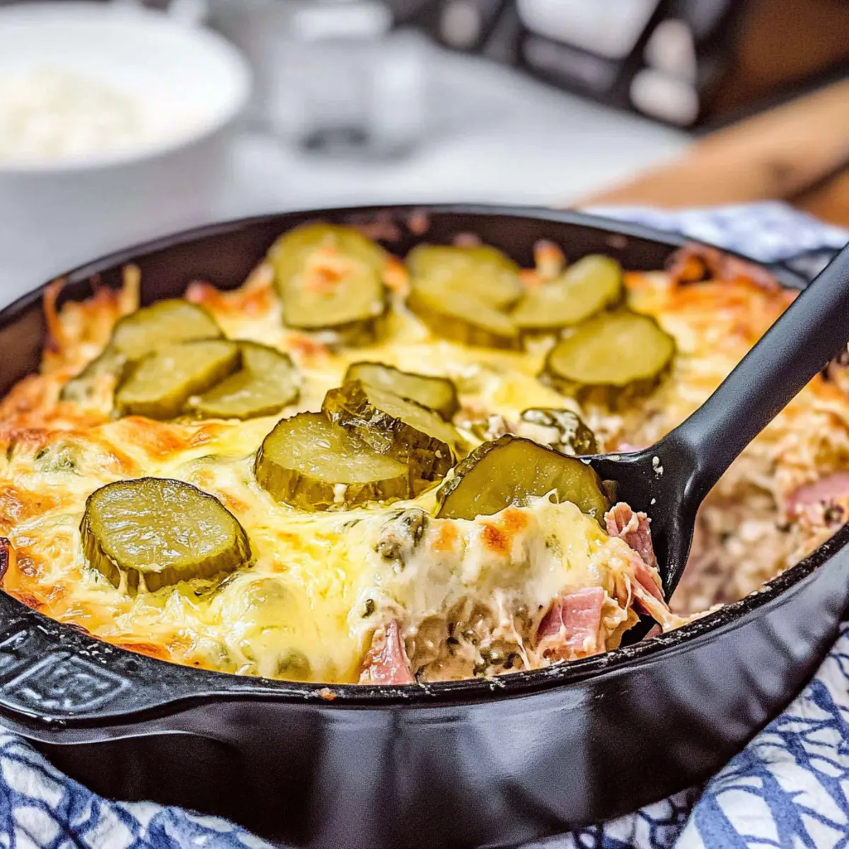 Layer Extra Pickles: Consider adding a few extra dill pickles on top before baking for an even zippier flavor that enhances the dish’s authenticity.