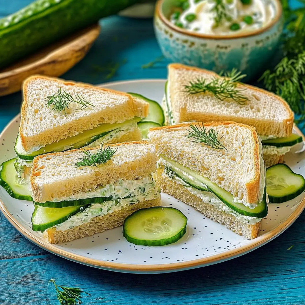 While the traditional recipe includes bread, a great alternative for gluten-sensitive guests is to use gluten-free bread. This allows everyone to enjoy these refreshing cucumber sandwiches without the worry of gluten, making them a charming treat for all occasion!