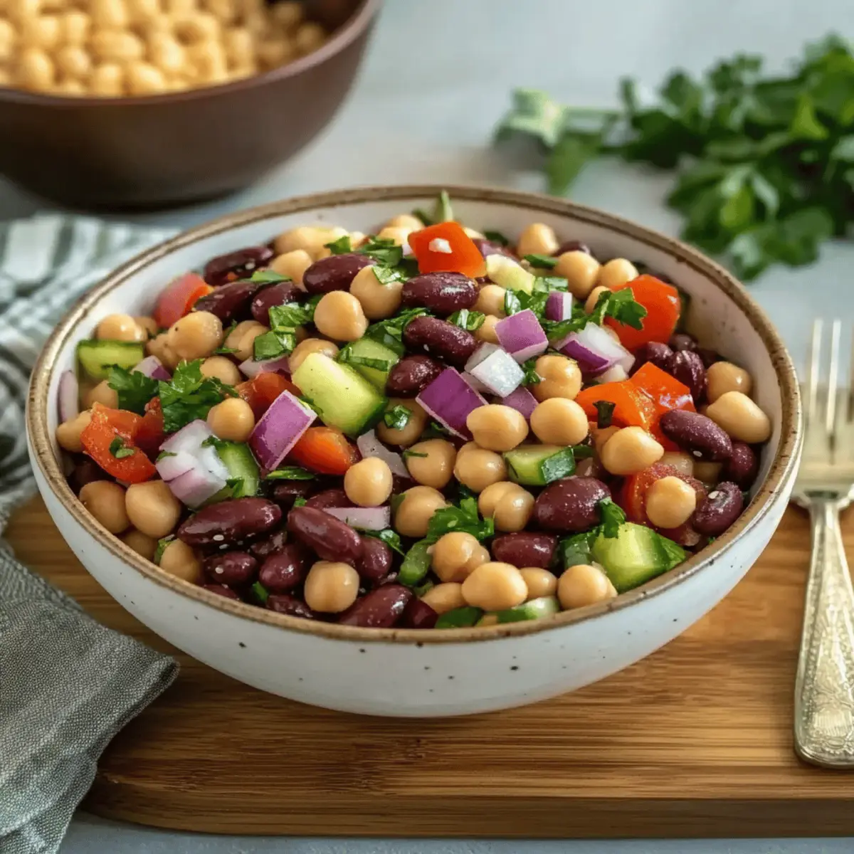 These Dense Bean Salad is perfect for busy home cooks looking to streamline their meal prep! You can chop the vegetables (red onion, bell peppers, and herbs) and rinse the beans up to 3 days in advance, refrigerating them in separate airtight containers. The beans can maintain their texture and flavor for this timeframe, ensuring freshness. When you’re ready to enjoy your salad, simply combine all ingredients with the dressing. For the best taste, allow the salad to marinate for at least 30 minutes or overnight, as this enhances the flavor profile. Rest assured, this prep method means your Dense Bean Salad will be just as delicious when you’re ready to serve!