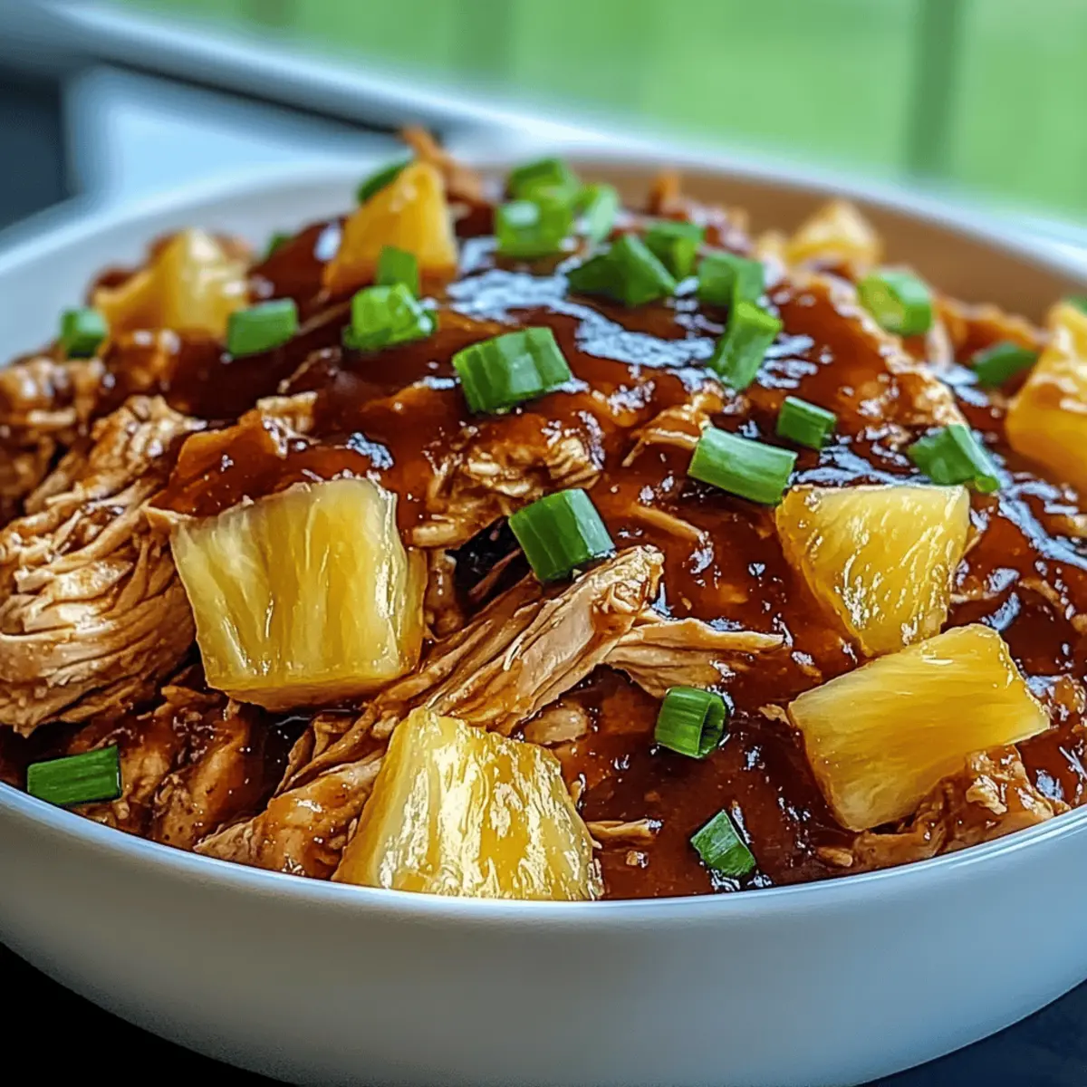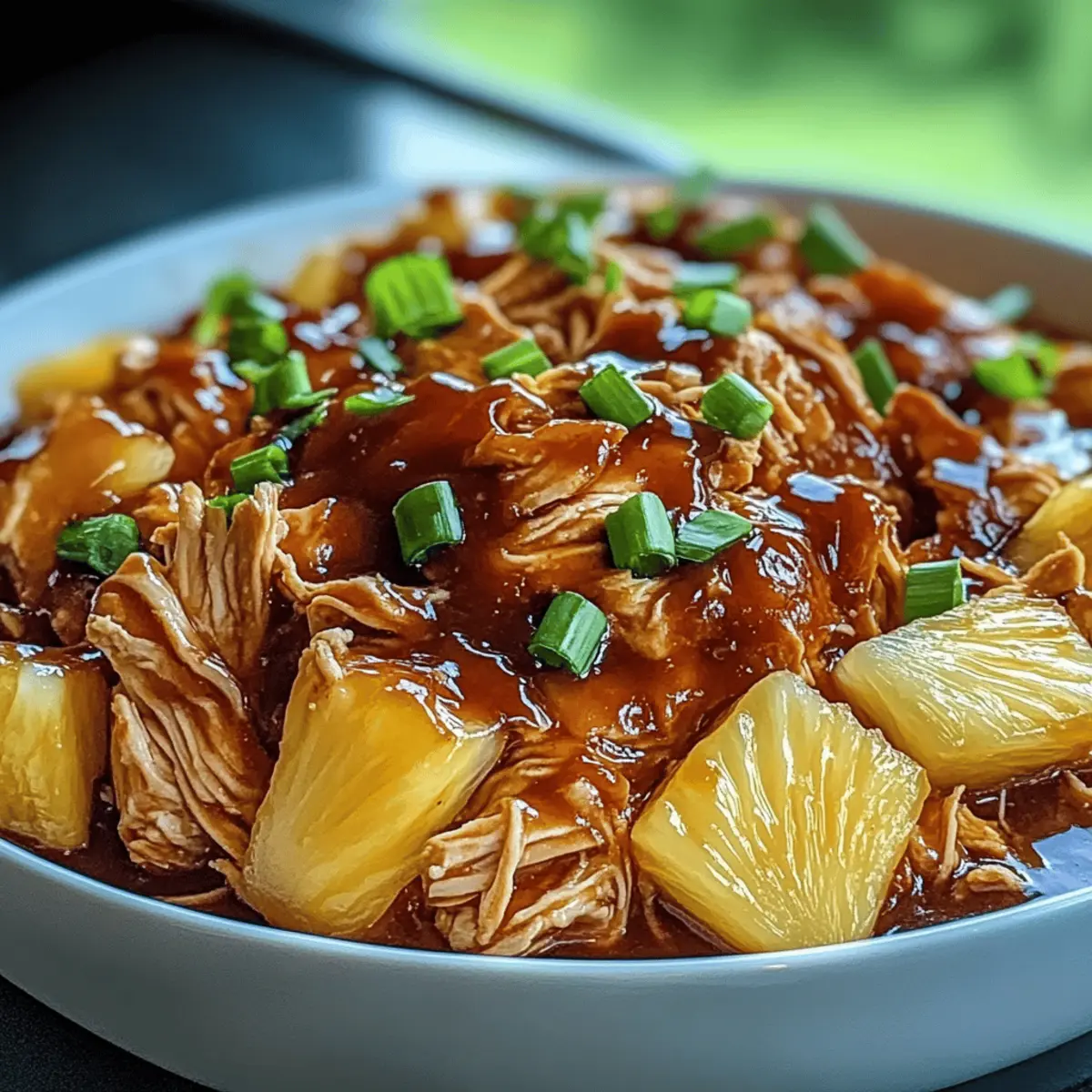 To serve, ladle the succulent chicken onto plates or in bowls, finishing with a sprinkle of chopped green onions for a burst of color and freshness. This last touch adds both visual appeal and a delightful crunch. Enjoy your hot, mouthwatering Easy Crockpot Pineapple BBQ Chicken with your favorite side dishes for a family-friendly meal that’s sure to impress!