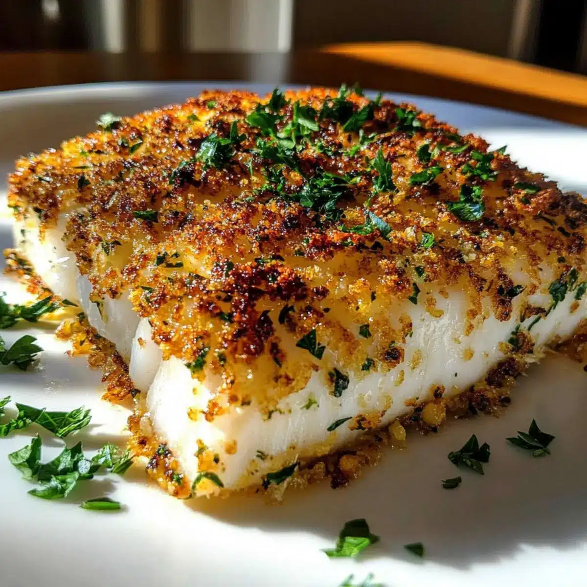 Crispy Texture Trick: Elevate your baking sheet with a wire rack to allow air circulation, which helps create a golden, crispy crust on your Garlic Parmesan Crusted Halibut.