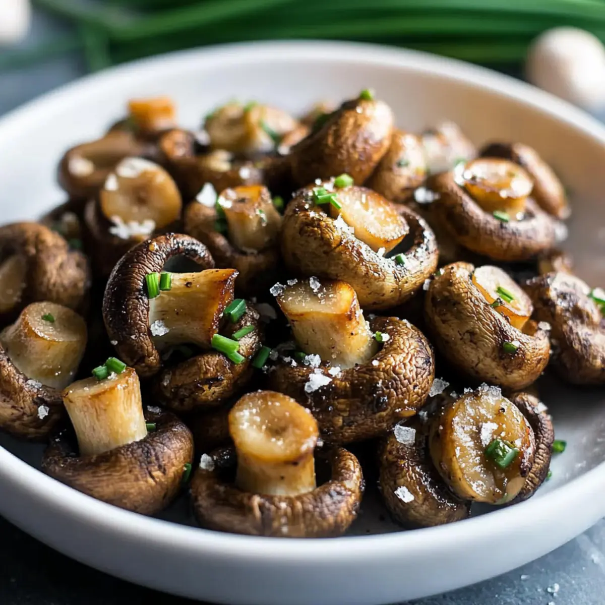 - In a large mixing bowl, combine the mushrooms, olive oil, minced garlic, chopped chives, sea salt, and black pepper. Toss until evenly coated.