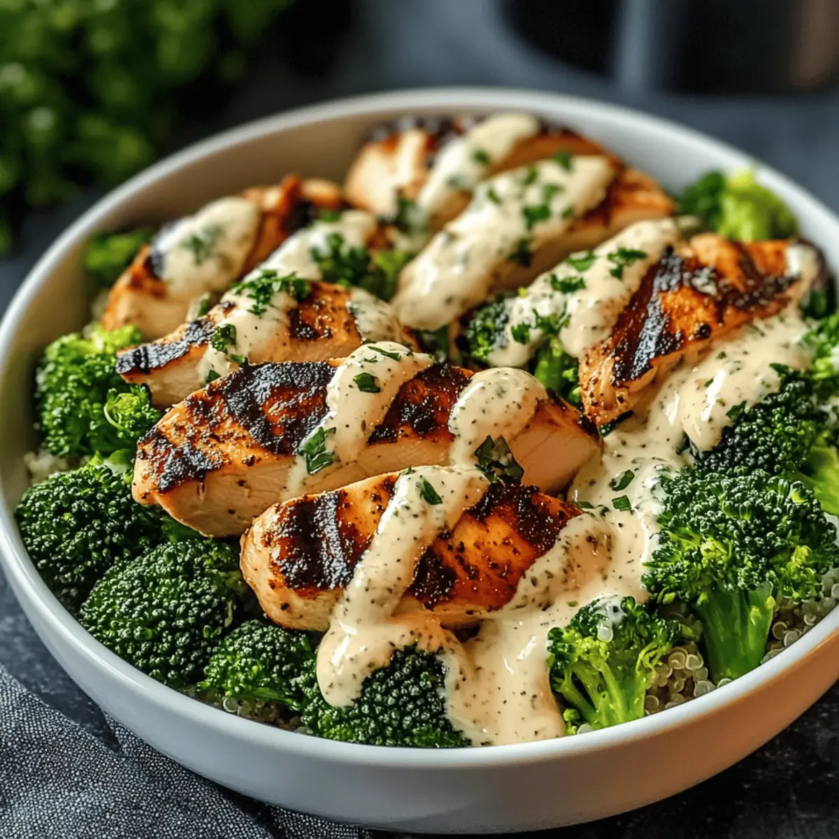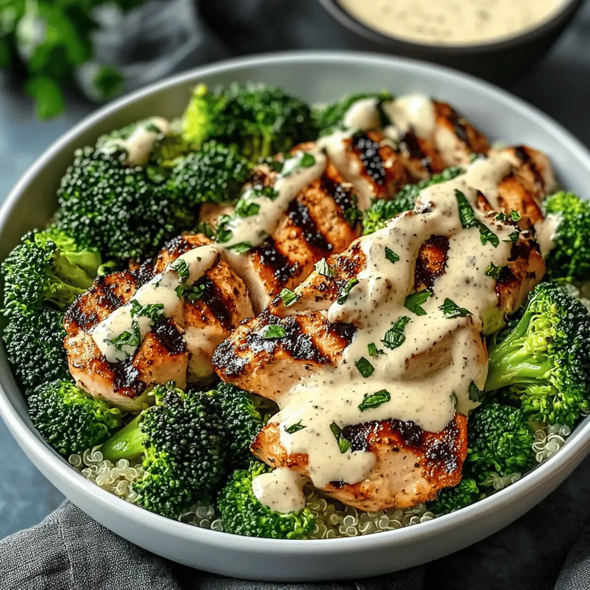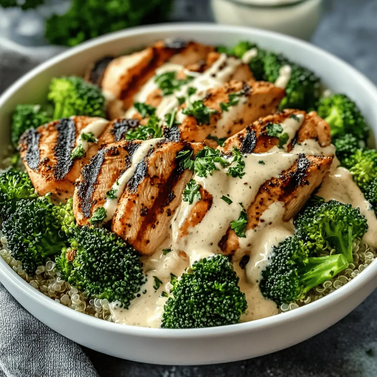 Grilled Chicken & Broccoli Bowls with Creamy Garlic Sauce Bliss