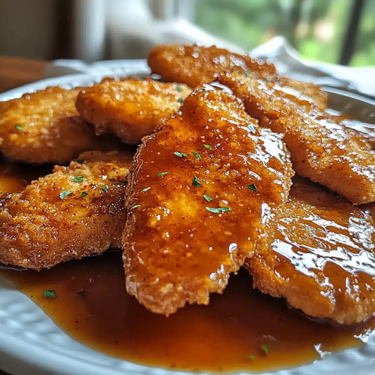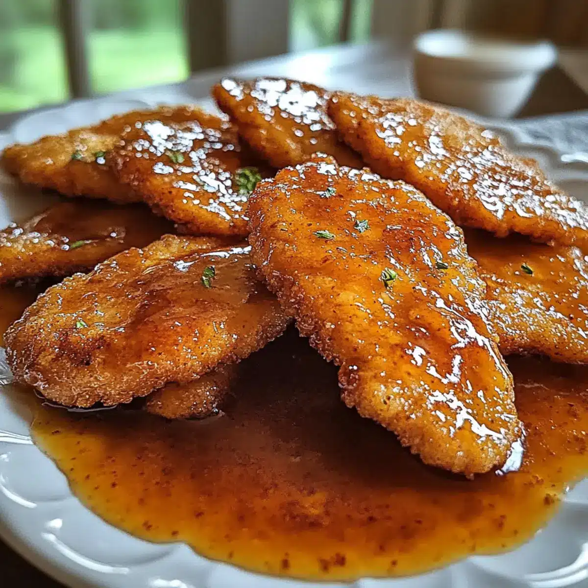 - Drizzle the hot honey glaze over each cutlet before serving.