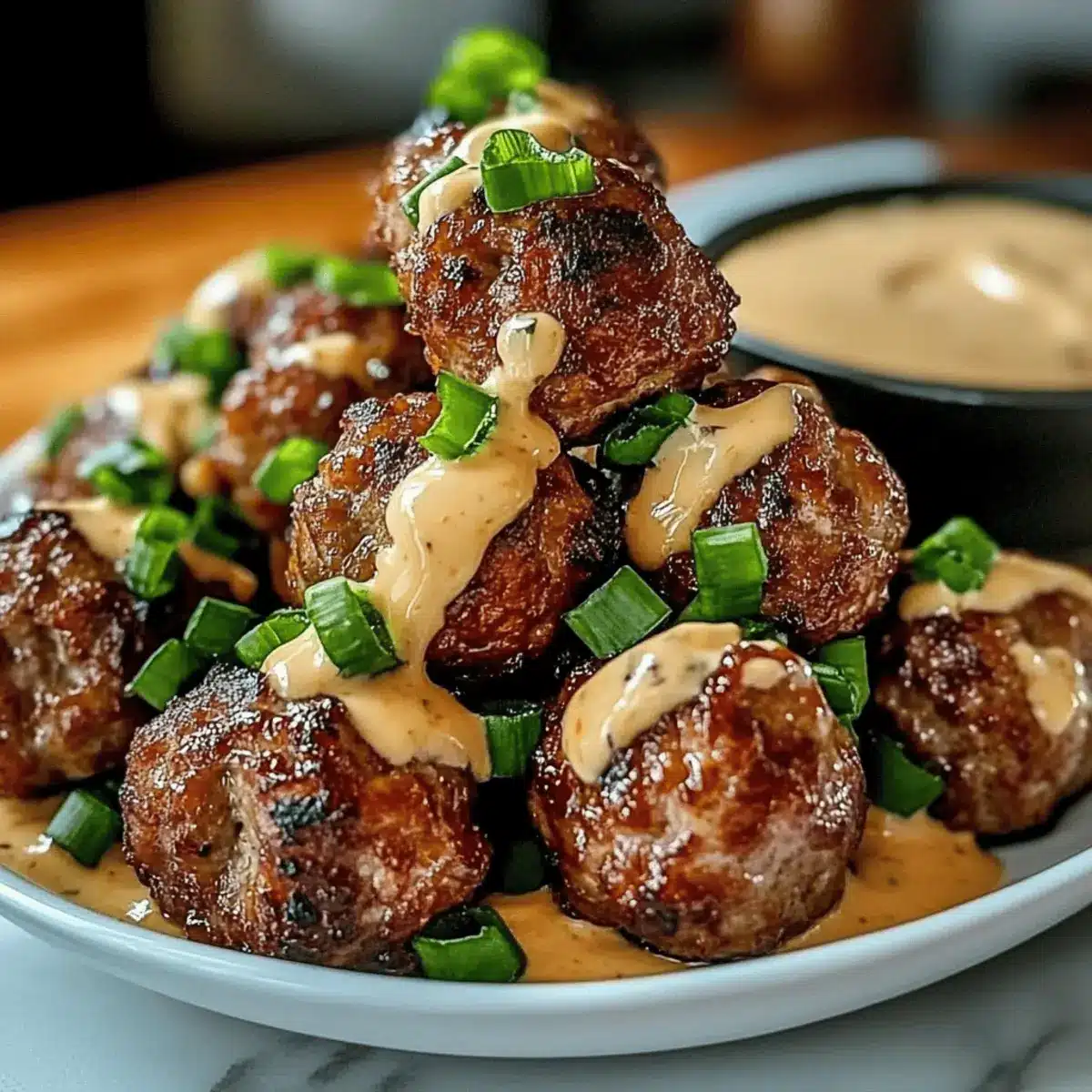 Deliciously crowd-pleasing: The combination of meatballs and creamy spicy mayo dip is sure to become a hit at any gathering—everyone will be coming back for more!
