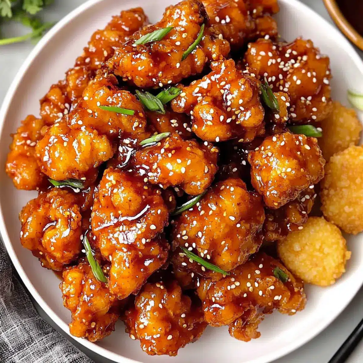 Transfer the Korean Popcorn Chicken Bites to a serving dish and garnish with toasted sesame seeds and chopped scallions for a pop of color and flavor. Consider adding crushed nuts for an extra crunch, and serve them hot, inviting friends and family to indulge in this delightful snack!