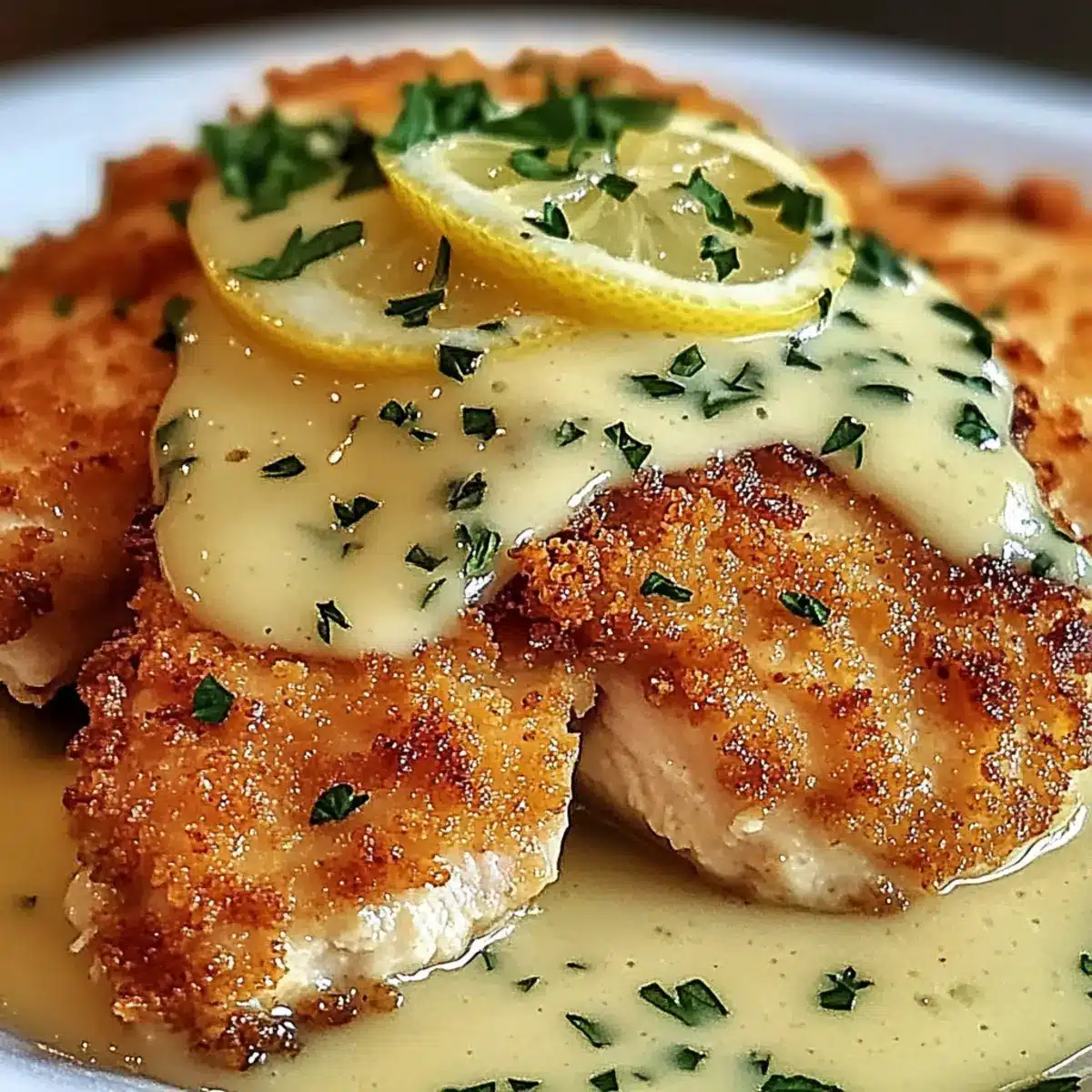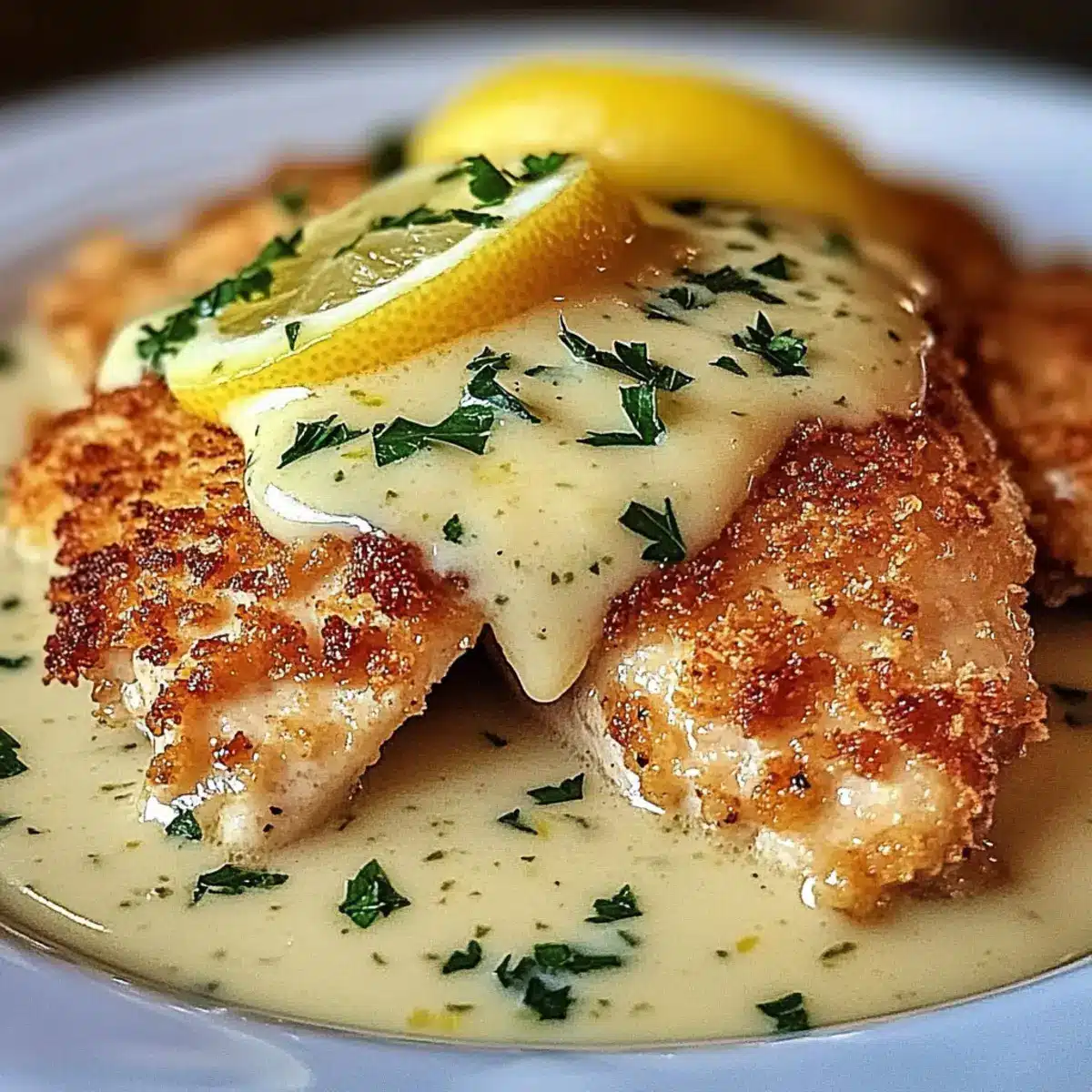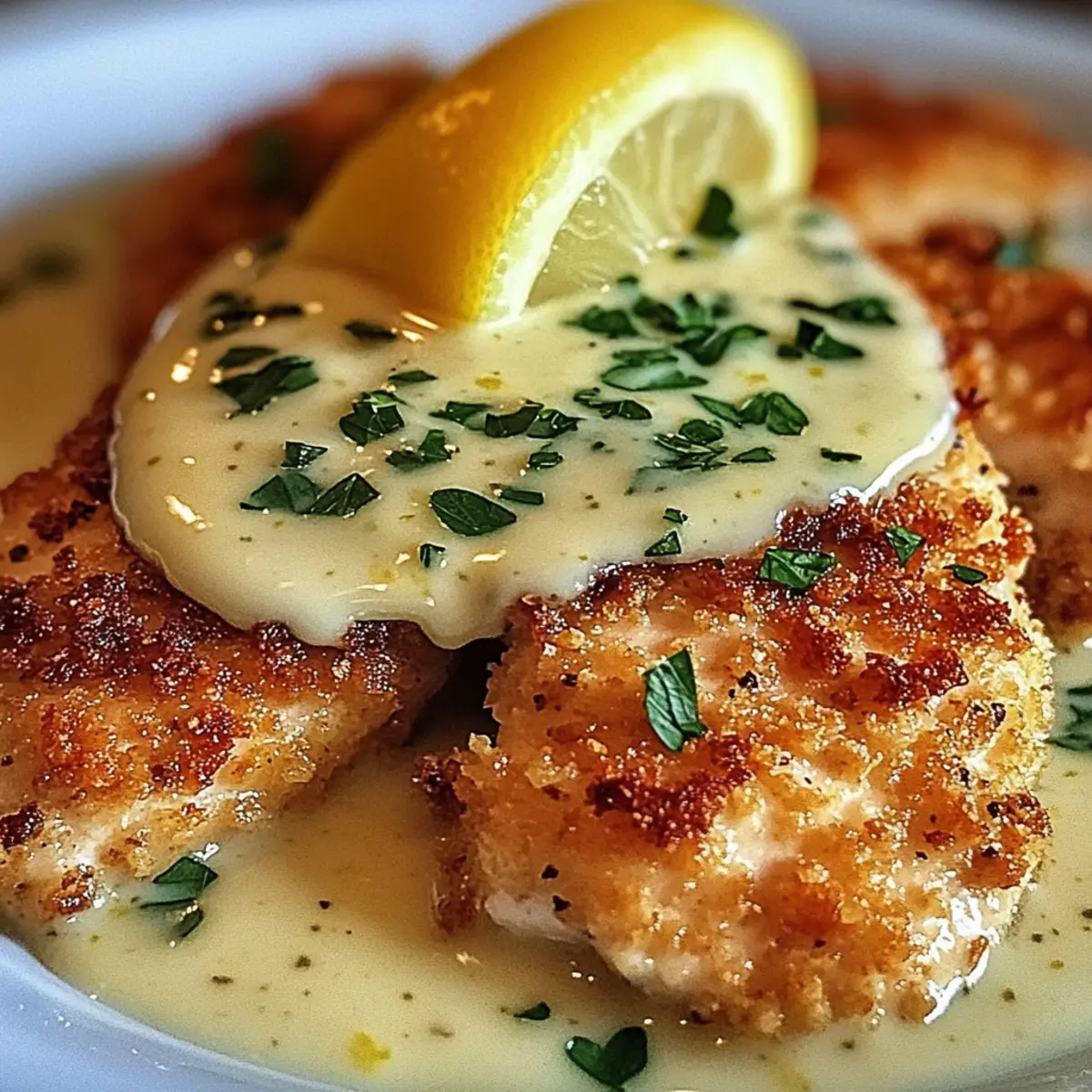 Lemon Pecorino Crusted Chicken with Creamy Lemon Sauce Delight