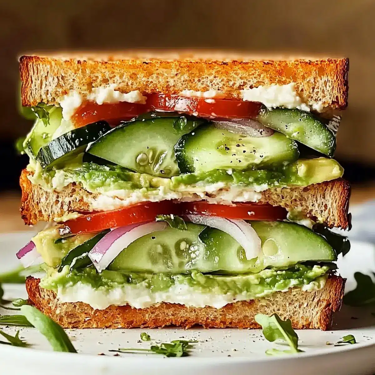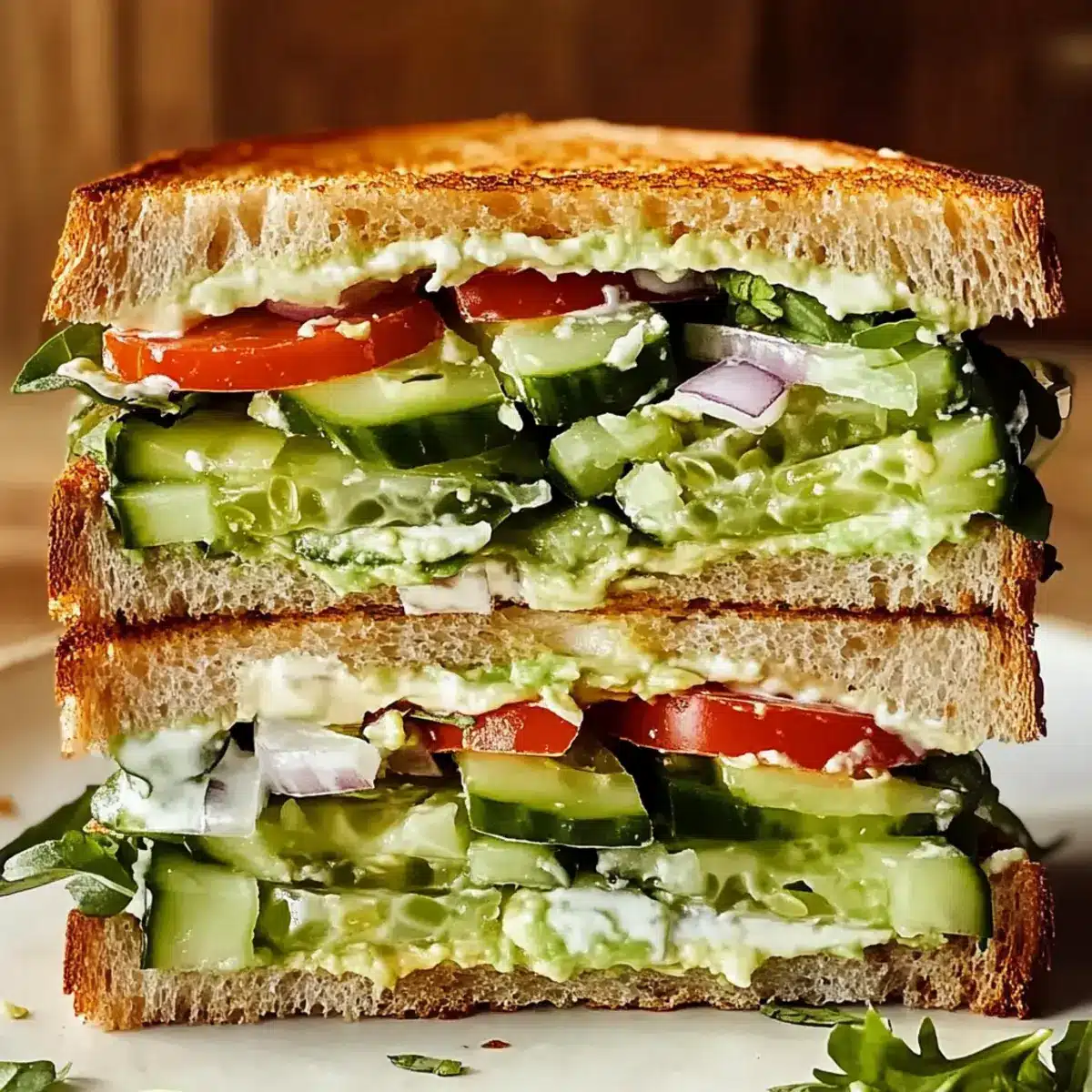 Layer Thoughtfully: For a better bite, layer ingredients strategically. Start with the avocado, add cucumbers, then greens. This keeps the sandwich intact and every layer delicious.