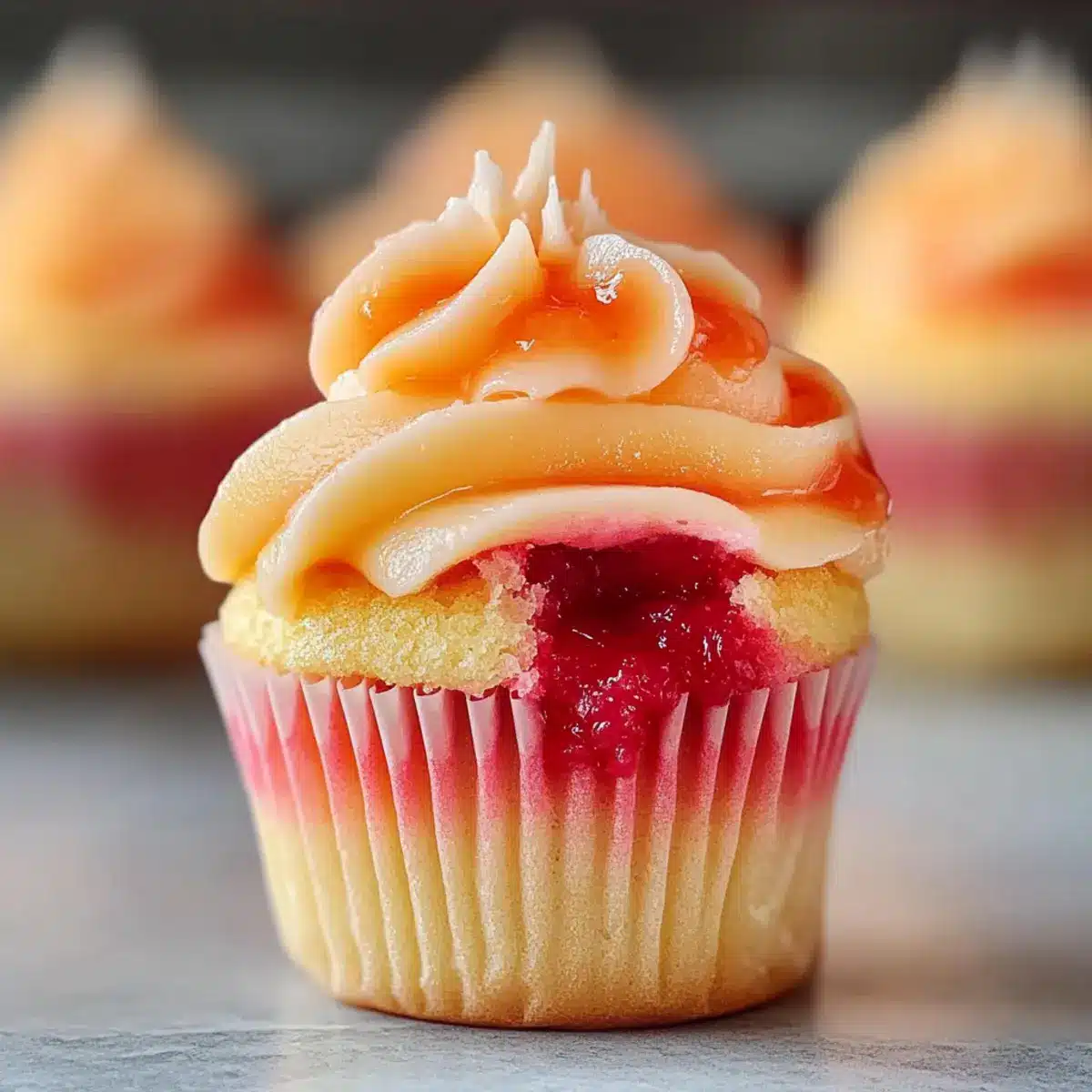 Get ready to whip up these Mango Strawberry Sunset Cupcakes that are not just a visual treat but bursting with tropical goodness!