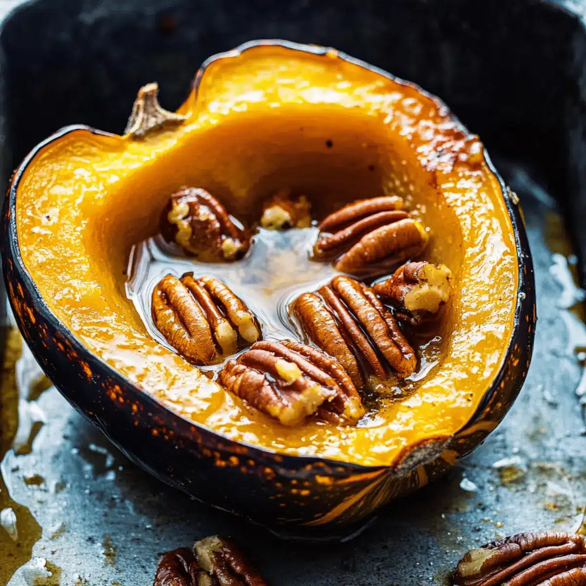 Once the squash is tender and beautifully roasted, remove it from the oven and optionally sprinkle toasted pecans over the top. The pecans will add a delightful crunch and nuttiness that perfectly contrasts with the buttery, syrupy filling. Return to the oven for an additional 5 minutes to toast the nuts and highlight their flavor.