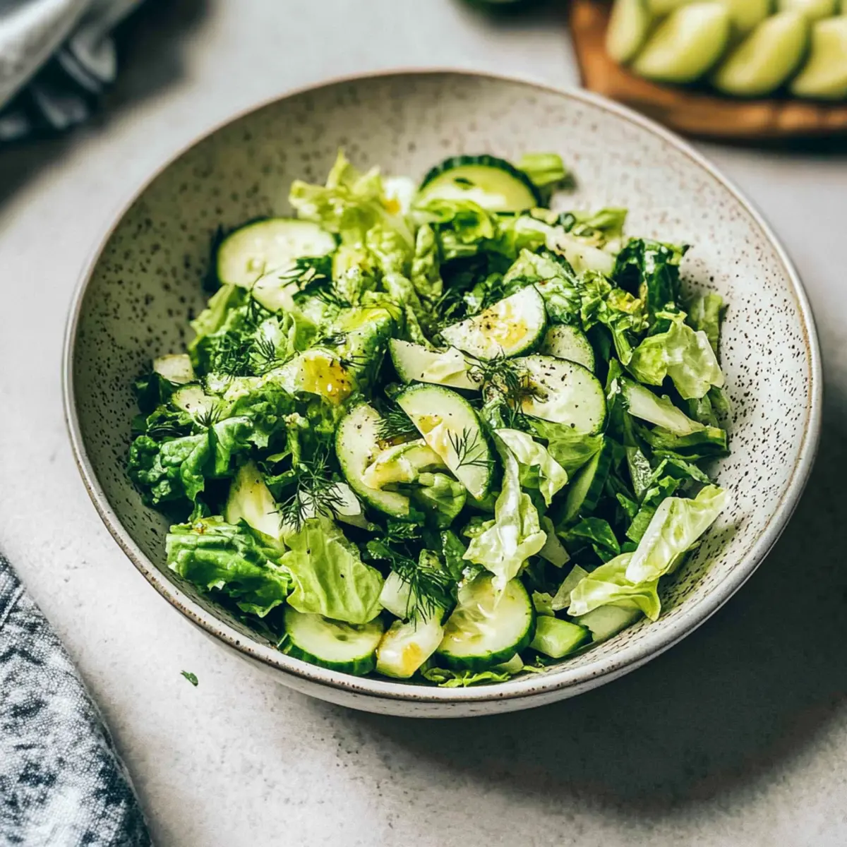 The gentle rustle of fresh romaine and the crisp snap of a cucumber can instantly transport me to a sunlit terrace in Greece. Maroulosalata, the quintessential Greek Lettuce Salad, is a testament to how simple ingredients can celebrate the seasonality of fresh produce. This refreshing dish, with its vibrant herbs and tangy dressing, takes only 10 minutes to prepare, making it an effortless addition to any weeknight meal or festive gathering. As a vegetarian-friendly accompaniment, maroulosalata pairs beautifully with grilled meats or as part of a cozy mezze platter. Trust me, once you taste this salad’s delightful crunch and zesty flavor, you’ll be ready to explore various delicious twists. What fresh ingredients are you excited to add to your own maroulosalata?