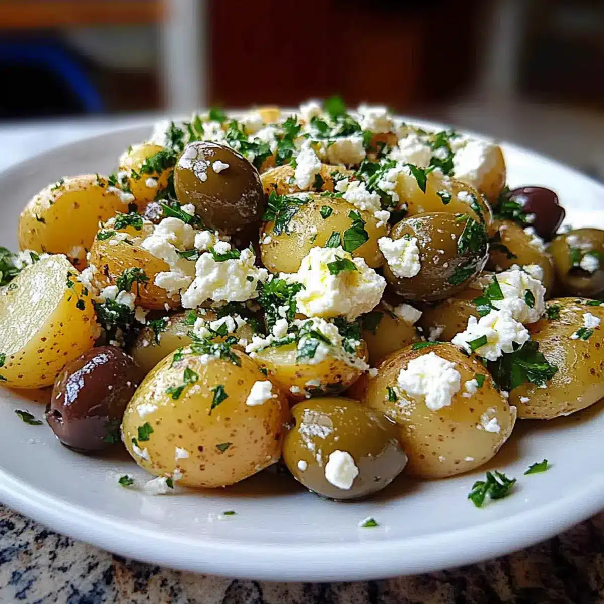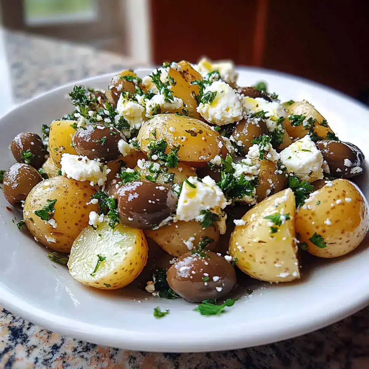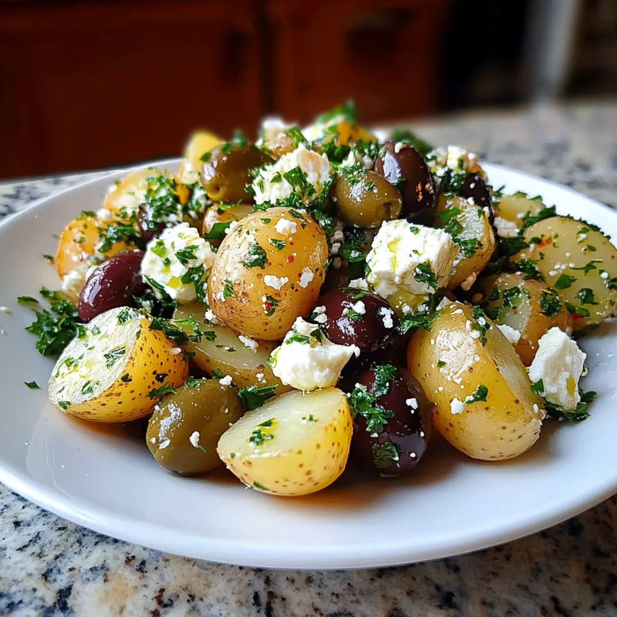Vibrant, Fresh Ingredients: This Mediterranean Potato Salad is packed with colorful veggies and herbs that brighten up your plate. Quick to Prepare: You’ll love how fast this dish comes together, making it a go-to for busy weeknights or last-minute gatherings. Crowd-Pleasing Flavor: The combination of creamy feta and salty olives creates a taste experience that impresses everyone at the table. Versatile Options: Feel free to swap in your favorite ingredients, like adding cherry tomatoes or capers for a personal touch. Perfect for Any Occasion: Whether it’s a picnic, a barbecue, or a simple family dinner, this salad elevates any meal effortlessly.