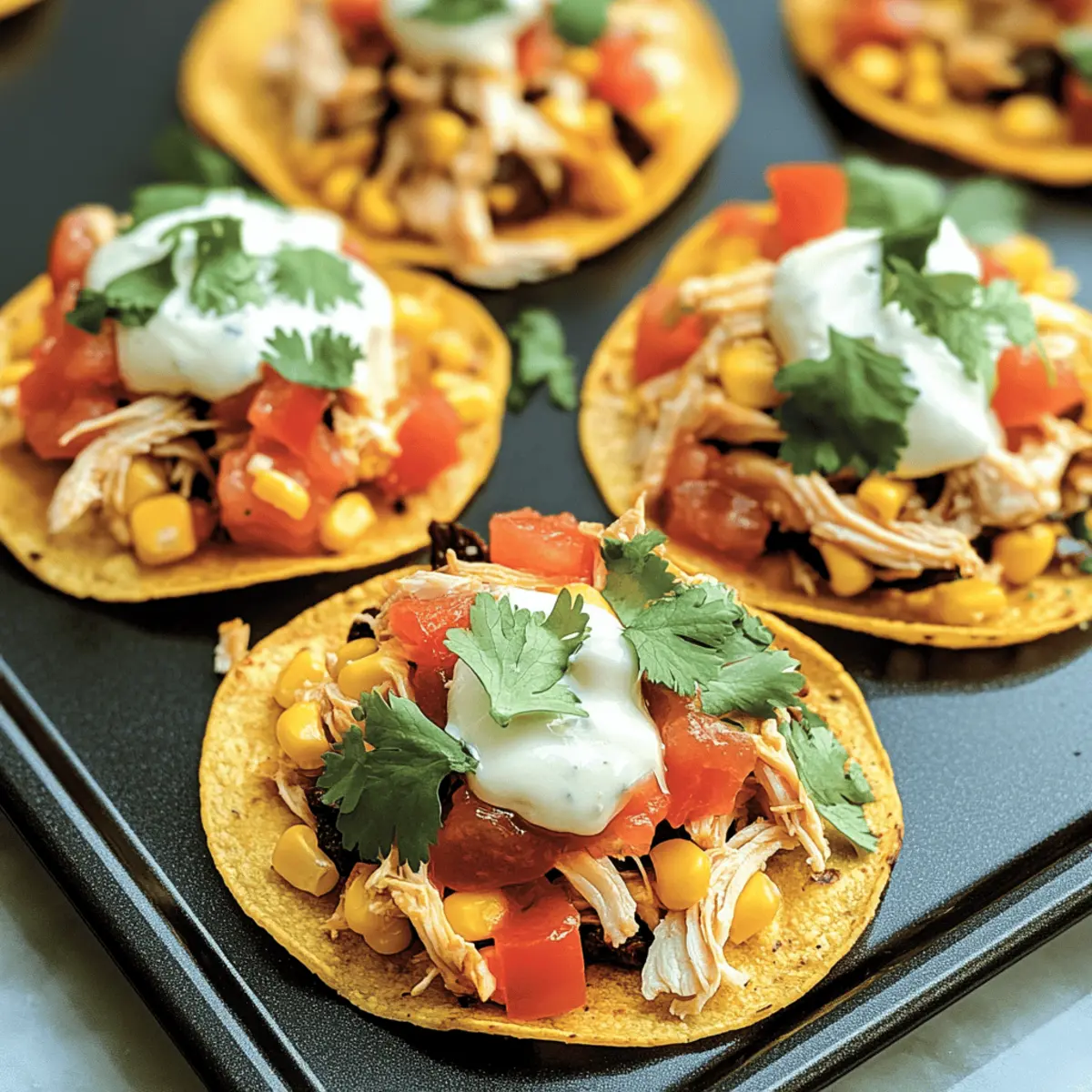 These Mexican Rotisserie Chicken Tostadas are ideal for meal prep enthusiasts looking to save time during the week! You can prepare the filling (shredded chicken, beans, corn, and taco seasoning) up to 3 days in advance; just store it in an airtight container in the refrigerator to maintain freshness. The corn tortillas can be crisped ahead but are best baked just before serving to retain their crunch. When ready to enjoy, simply reheat the chicken mixture on the stovetop for a few minutes until warmed through, assemble the tostadas with cheese, and pop them back in the oven for 5 minutes until the cheese is melted. This way, you’ll have vibrant, fresh-tasting tostadas with minimal effort!