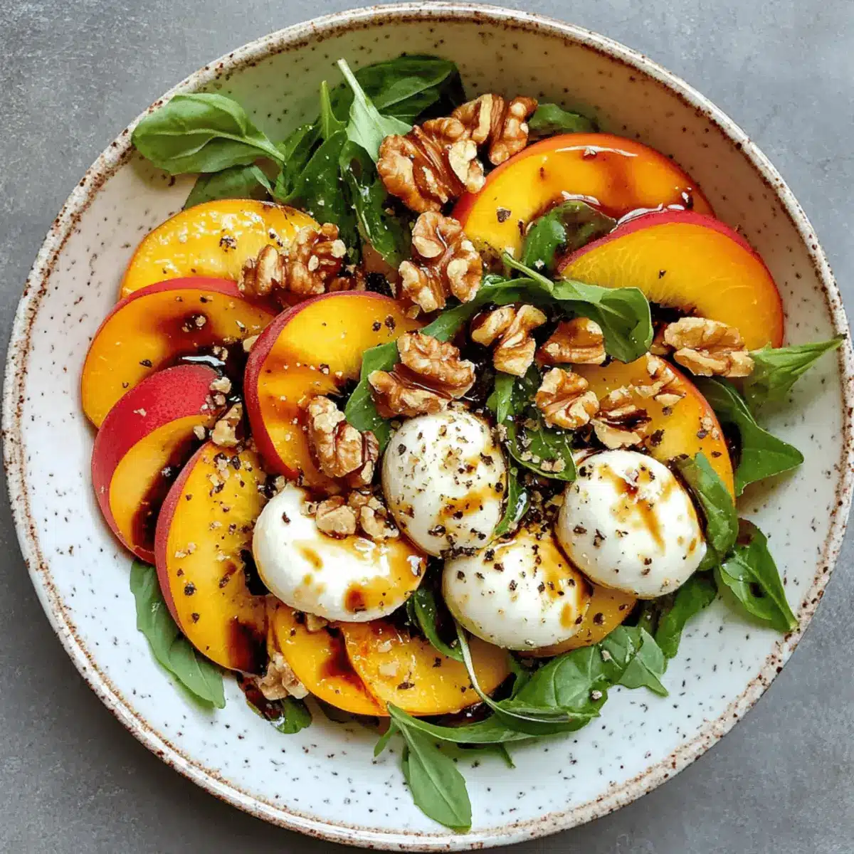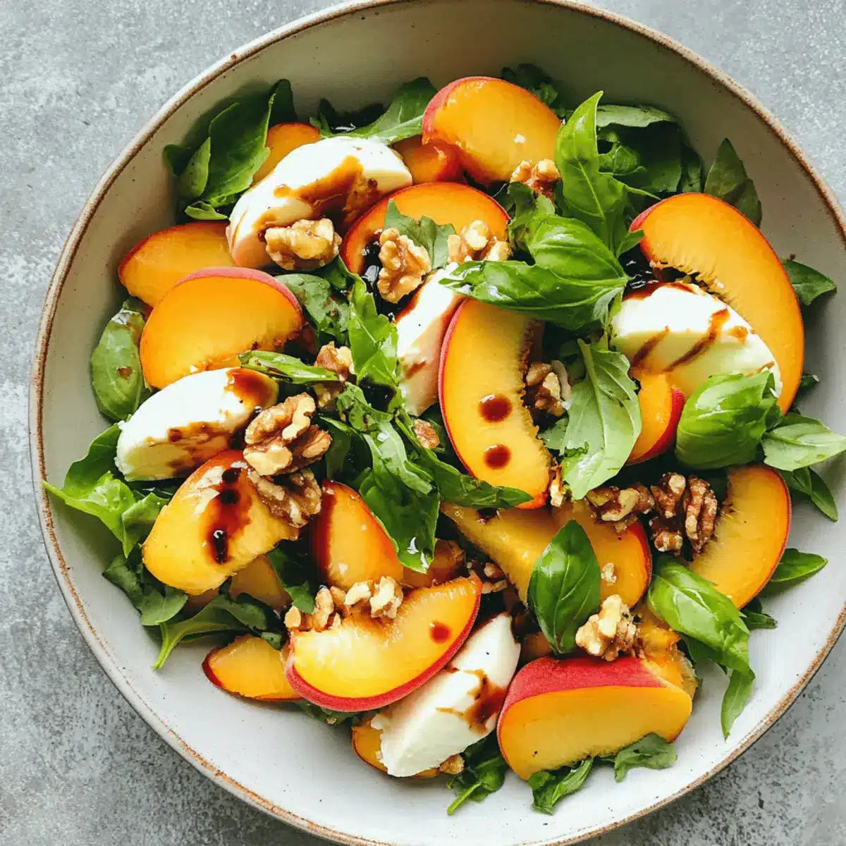These Millionaire Peach Salad components can be prepared ahead of time, making it an excellent option for meal prep aficionados! You can wash and slice the peaches up to 24 hours in advance; just toss them in a little lemon juice to prevent browning. The greens, mozzarella, walnuts, and feta can be stored separately in airtight containers and will stay fresh for up to 3 days. When you’re ready to serve, simply combine all the ingredients in a bowl, drizzle with the balsamic glaze, and gently toss. This way, you’ll enjoy a truly refreshing salad with minimal effort, leaving you more time to relax and savor the flavors of summer!