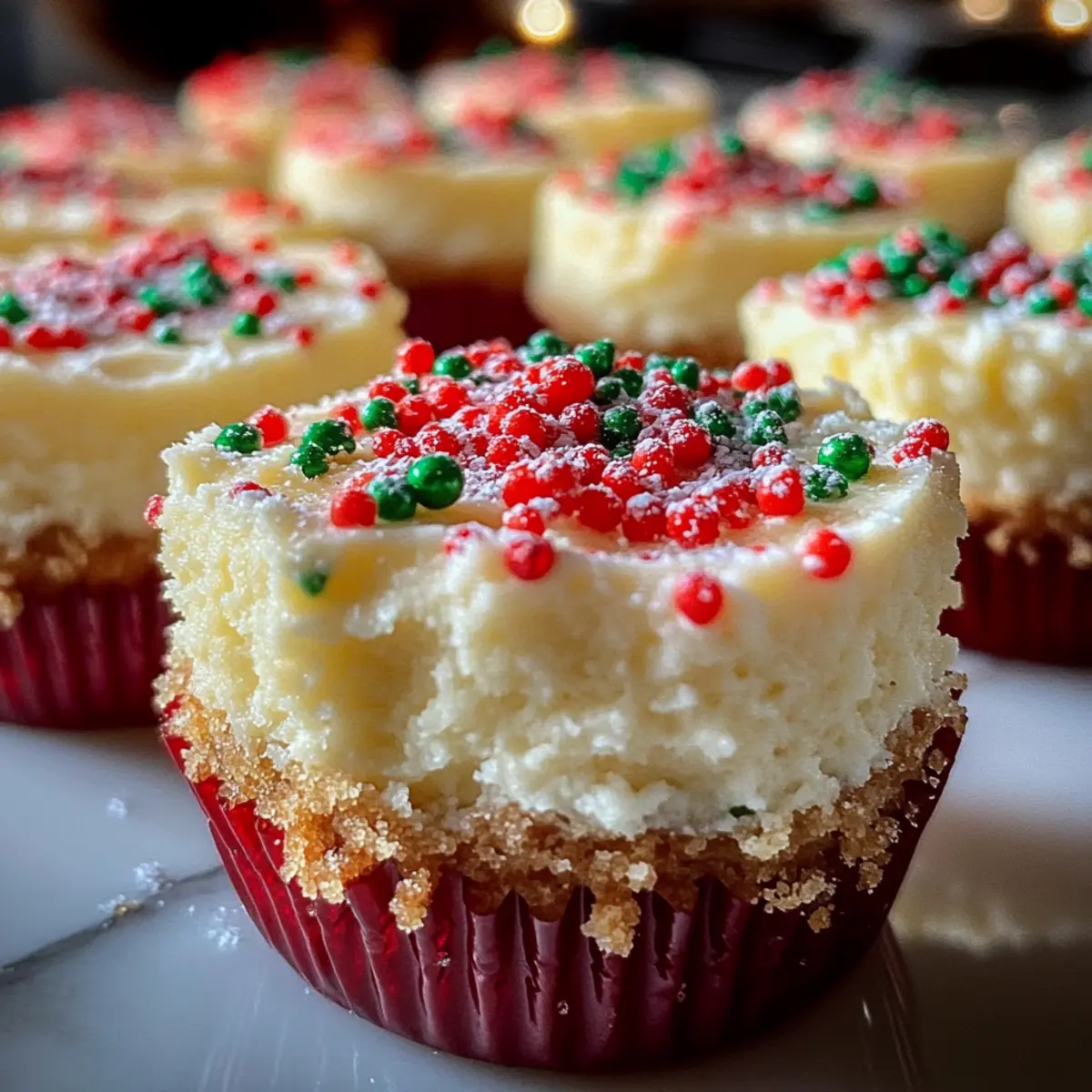 The aroma of holiday spices fills the air as I pull these delightful Mini Christmas Cheesecakes from the oven. Perfectly portioned for sharing, these no-bake treats are not only a feast for the eyes but also a breeze to whip up, making them my go-to recipe for festive gatherings. With a velvety filling nestled in a buttery graham cracker crust and topped with vibrant red and green sprinkles, these cheery bites deliver joy in every nibble. Plus, they’re easily adjustable for gluten-free diets, so everyone can indulge without worry. Are you ready to impress your family and friends with a dessert that captures the essence of your holiday spirit? Let’s dive into this recipe and spread the cheer!