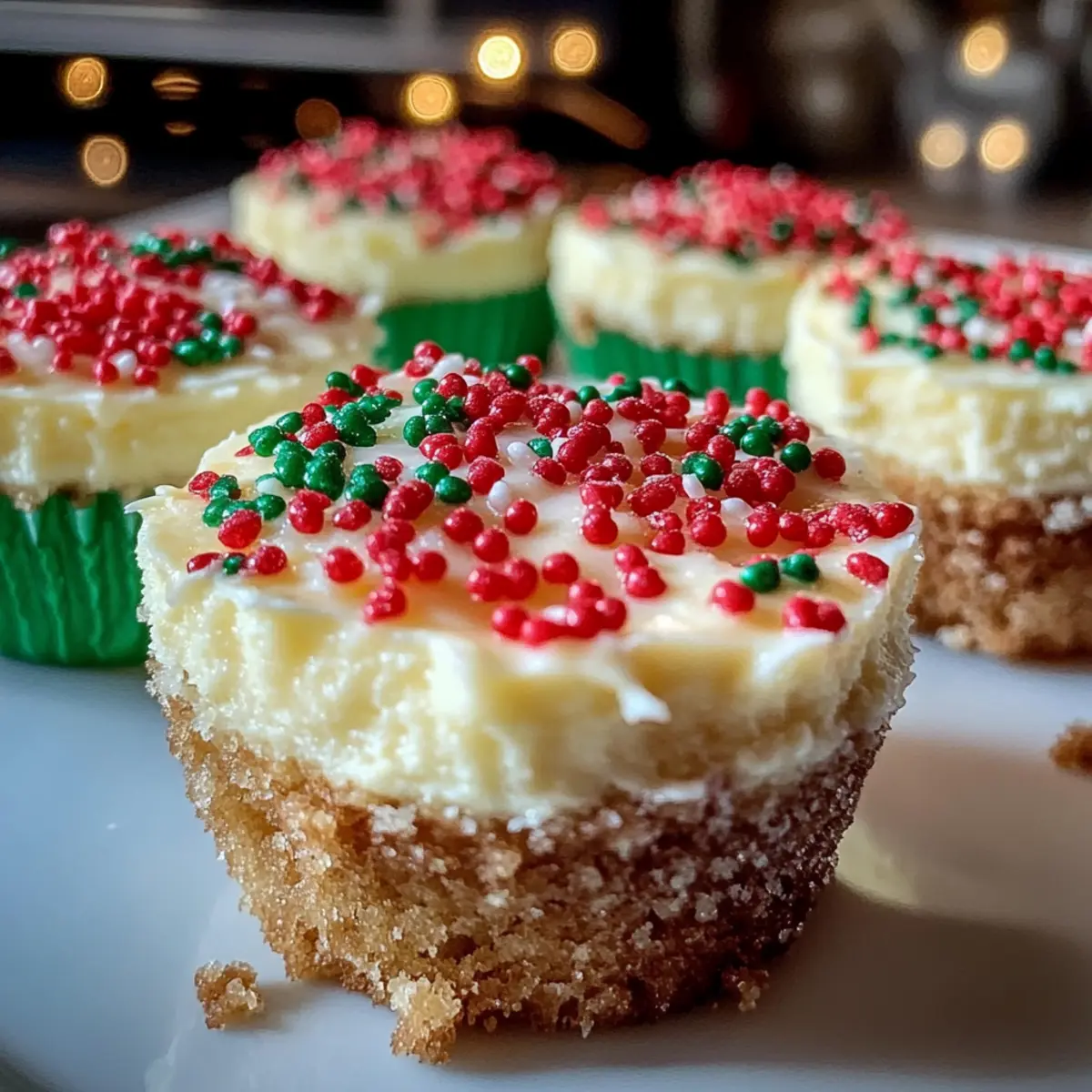 Festive Delight: These Mini Christmas Cheesecakes bring holiday cheer to your dessert table with their colorful sprinkles and rich flavors.