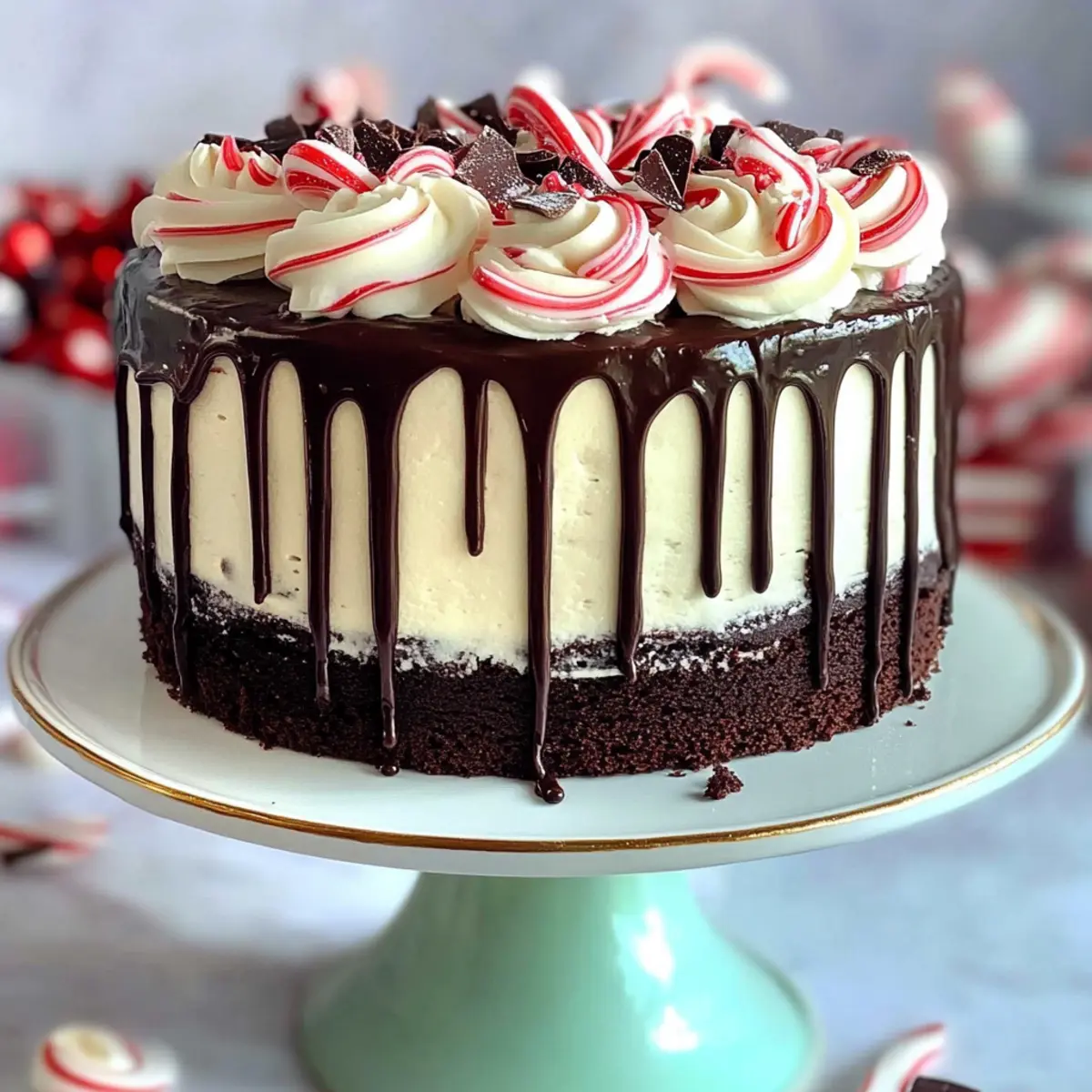 Sugary Candy Canes: Crushed candy canes sprinkled on top not only enhance presentation but also add a sweet, minty crunch that echoes the cake’s flavors.