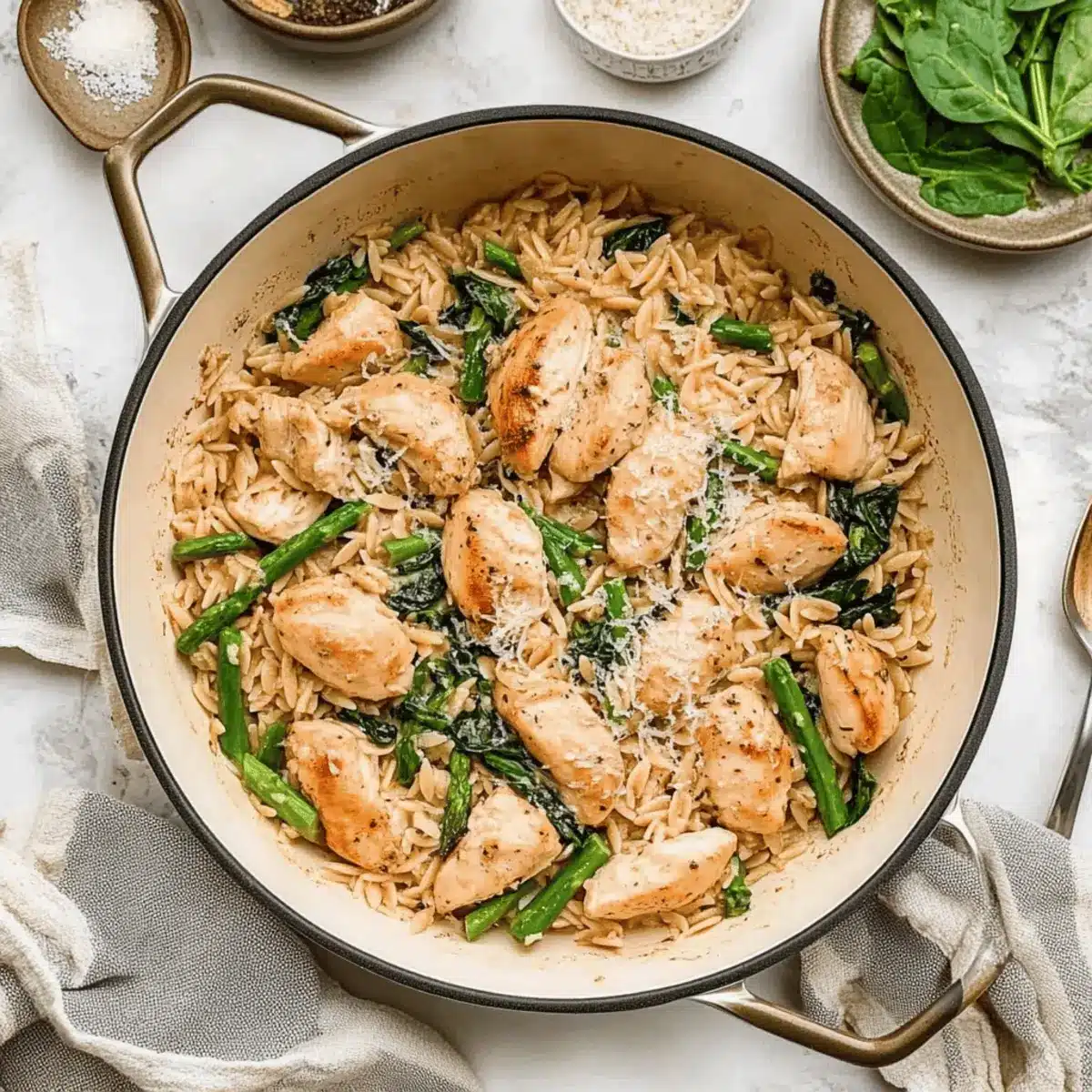The more the merrier! If asparagus isn’t your thing or you simply don’t have it on hand, feel free to swap in zucchini, bell peppers, or cherry tomatoes. Each will bring a different flavor and texture profile to your One Pot Chicken Orzo, showcasing the versatility of this delightful dish!