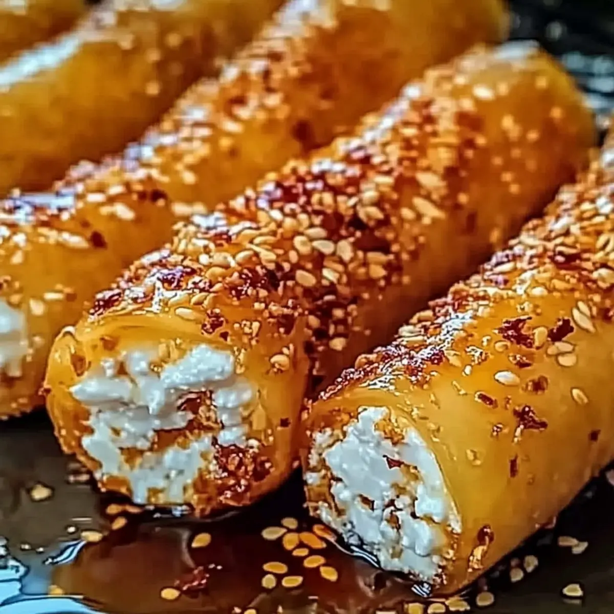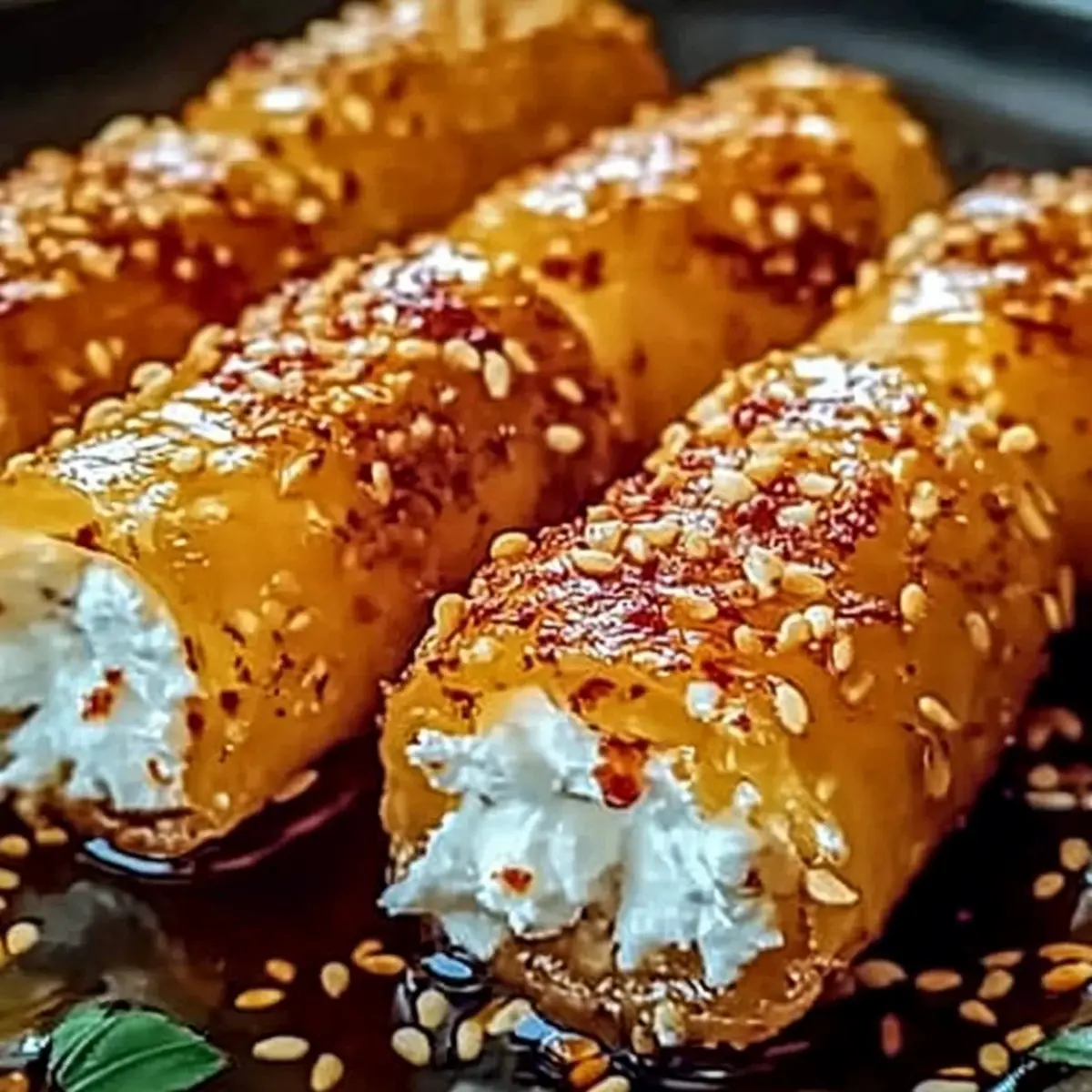 Oven Fried Feta Rolls with Chili Honey for Irresistible Snacking