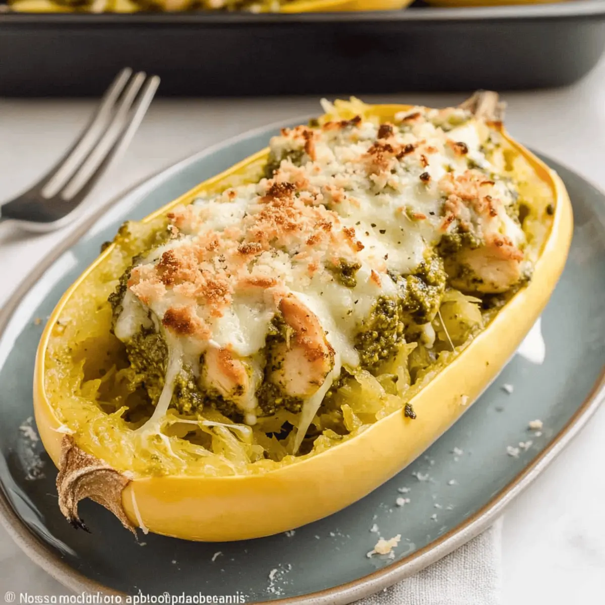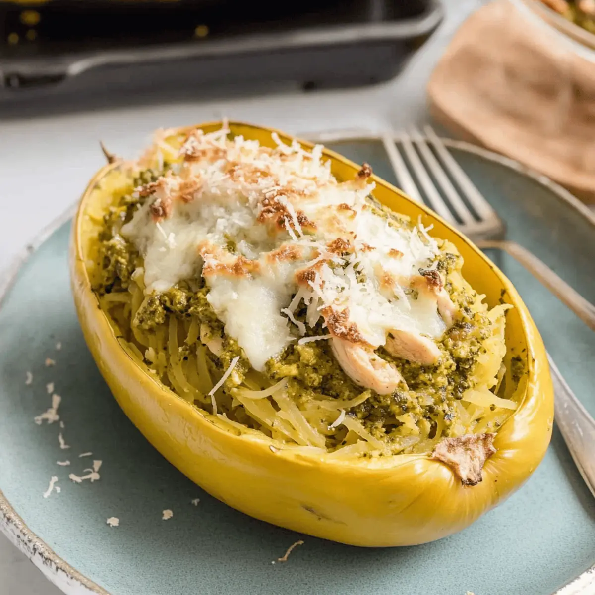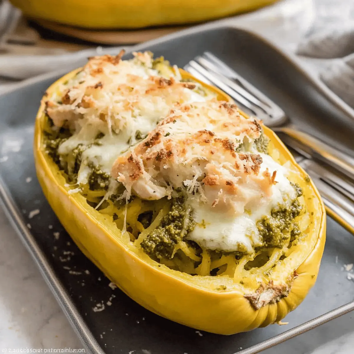 Delicious Pesto Chicken Stuffed Spaghetti Squash for Dinner