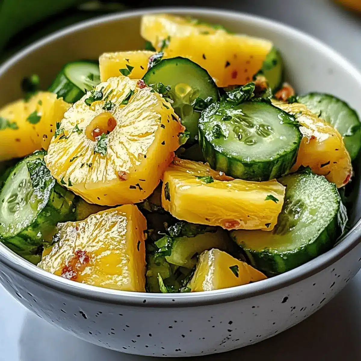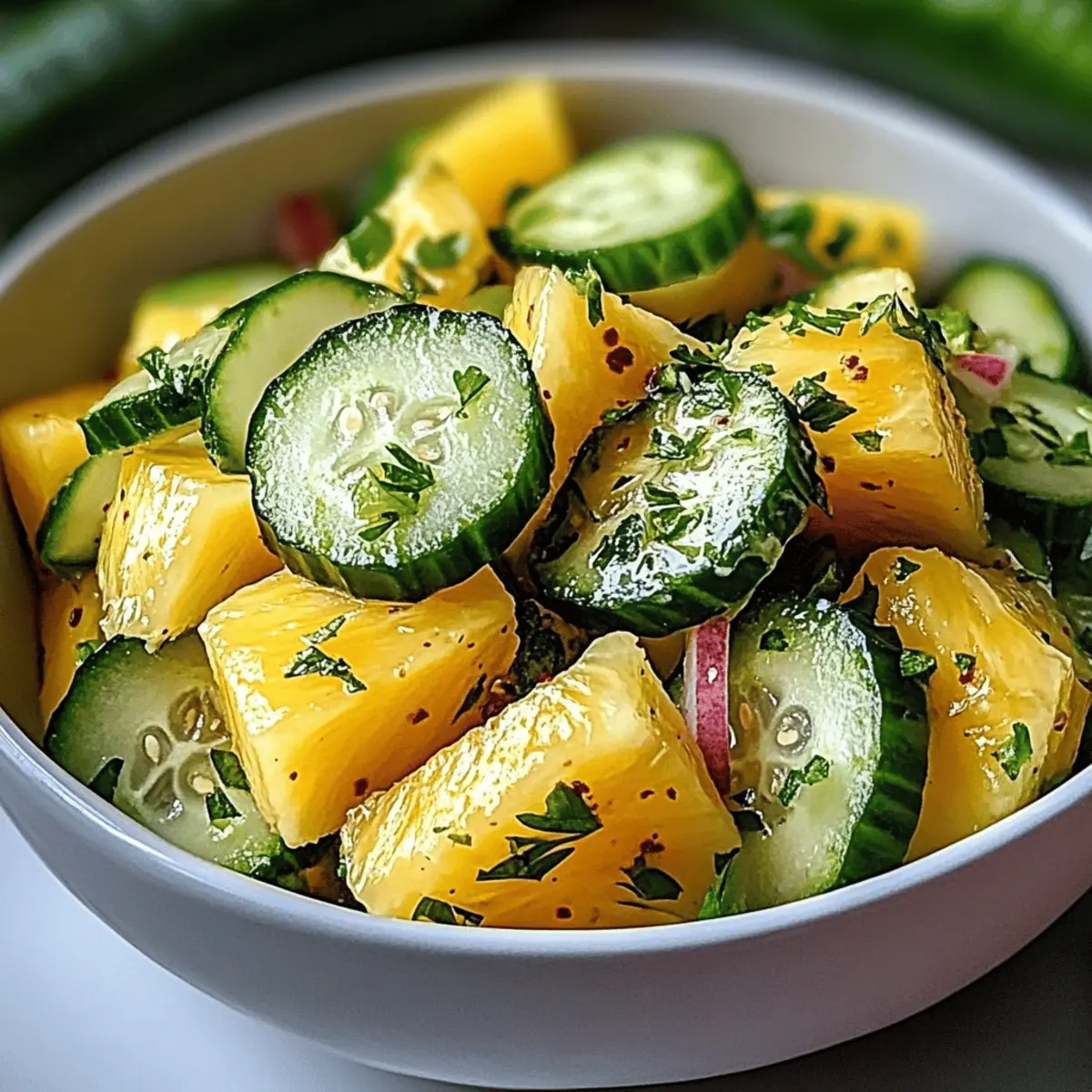 Vibrant Colors: The mix of yellow pineapple and green cucumbers creates an eye-catching dish that brightens any table.