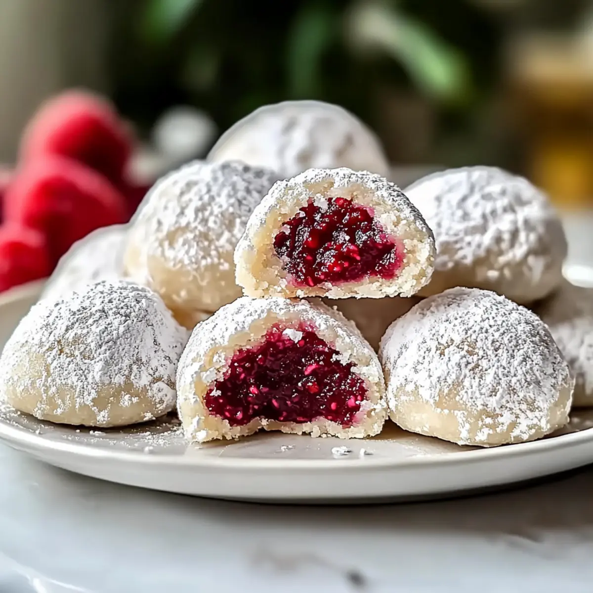 Raspberry Almond Snowball Cookies for a Sweet Holiday Surprise