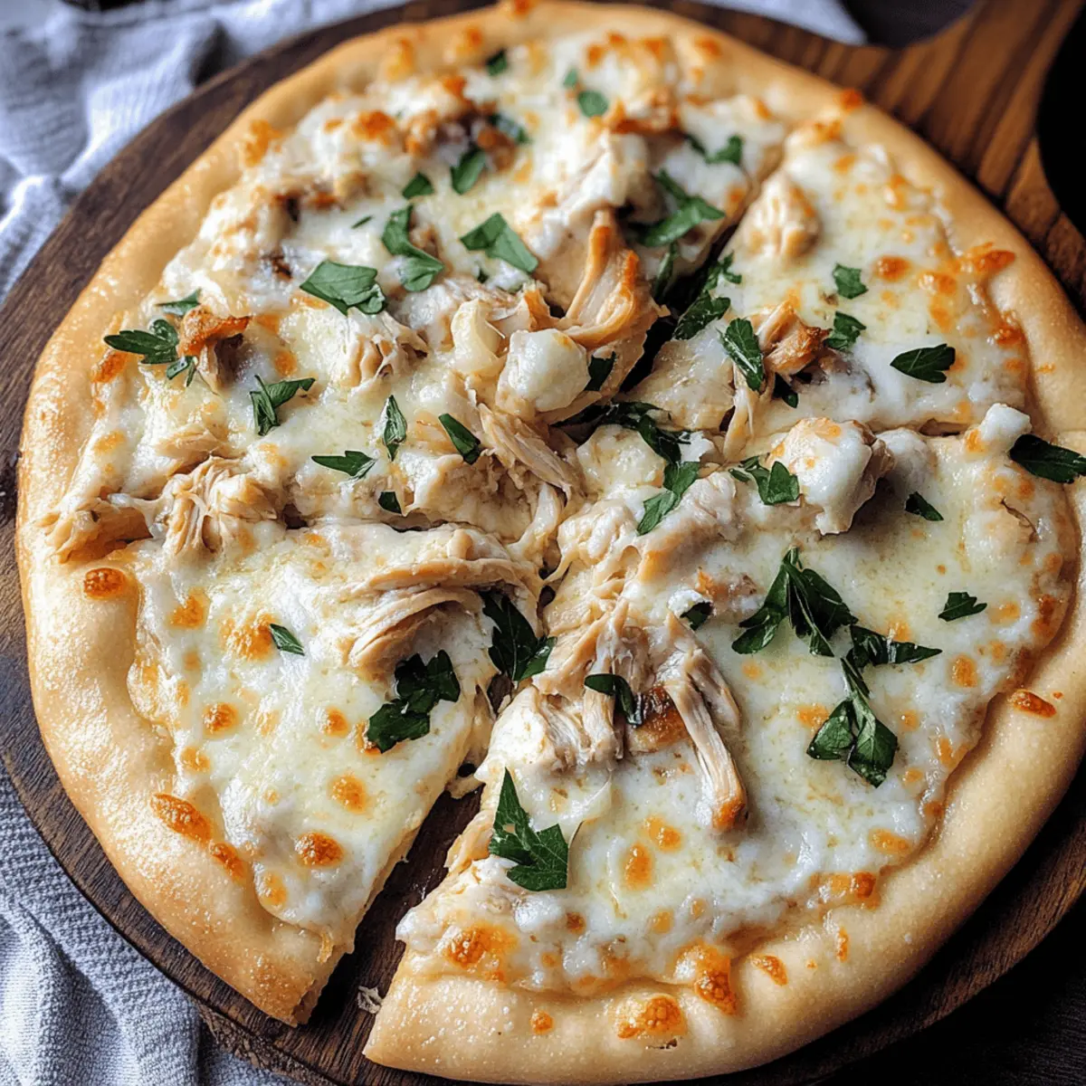 Comforting, Delicious Flavor: The combination of roasted garlic, creamy white sauce, and tender chicken creates a rich, hearty flavor that elevates your pizza experience. Easy to Prepare: Using store-bought dough allows for quick assembly, making it perfect for weeknight meals or spontaneous gatherings. Freezable Convenience: Prep it ahead of time and freeze for an easy dinner solution that’s ready whenever you need it. Serving it alongside a fresh salad or garlic bread makes for a complete meal that everyone will adore—like our Garlic Parmesan Chicken dish! Visual Appeal: With fresh herbs adding a pop of color, this pizza not only tastes great but looks stunning too—sure to impress your guests!
