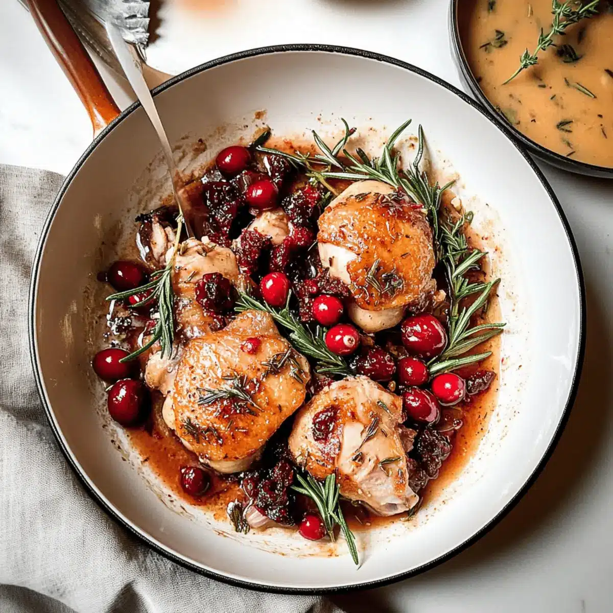 Flavor Explosion: The combination of juicy rosemary chicken thighs and sweet-tart cranberry sauce creates a mouthwatering taste experience that’s hard to resist.