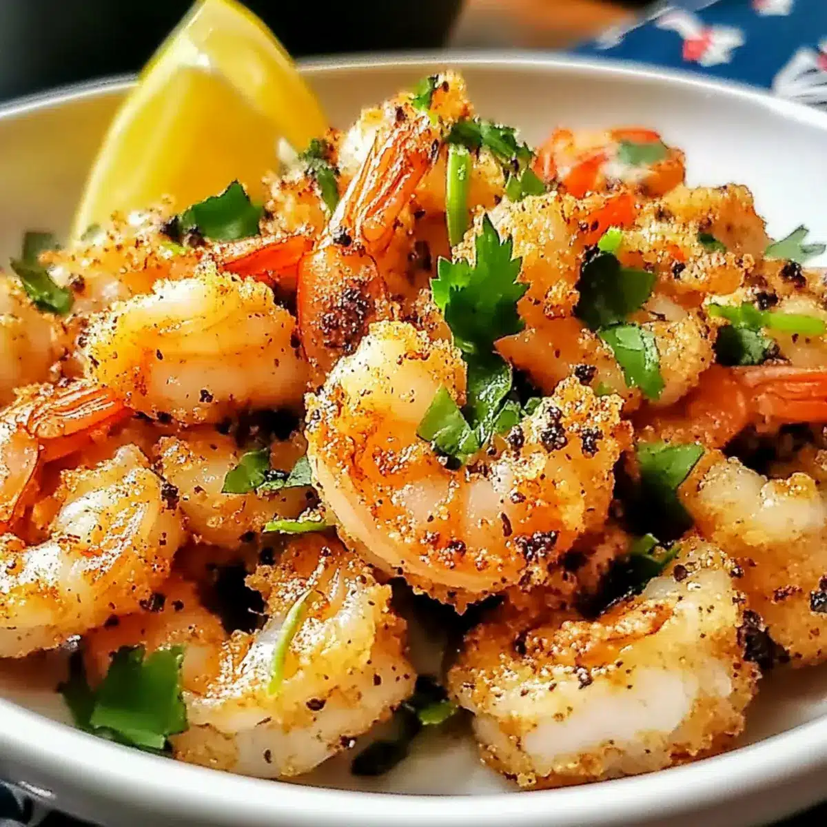 Serve your Salt and Pepper Crispy Shrimp hot, garnished with fresh cilantro and accompanied by lemon wedges. The vibrant cilantro adds a pop of color and flavor, while the lemon juice enhances the dish, cutting through the richness. Enjoy the delightful crunch and savor the deliciousness right away for the best experience!